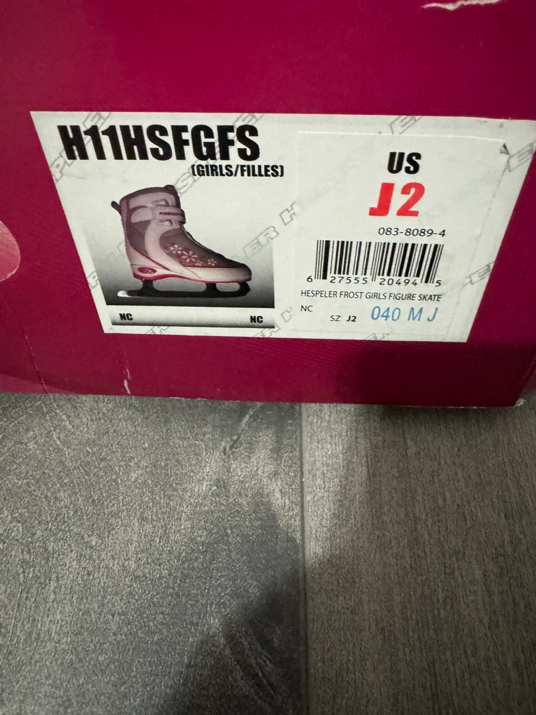 Selling a pair of Hesperler Frost girls figure skates in size US J2. They are in great condition and come with the original box!