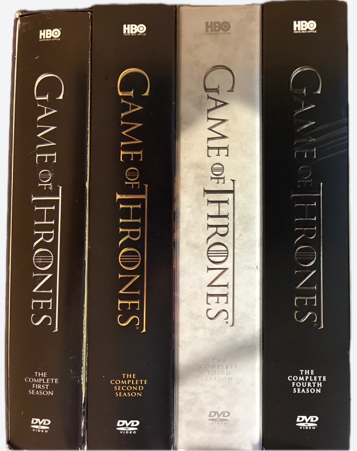 Selling the first four seasons of Game of Thrones on DVD! The complete first, second, third, and fourth seasons are included. Great for any fan of the series