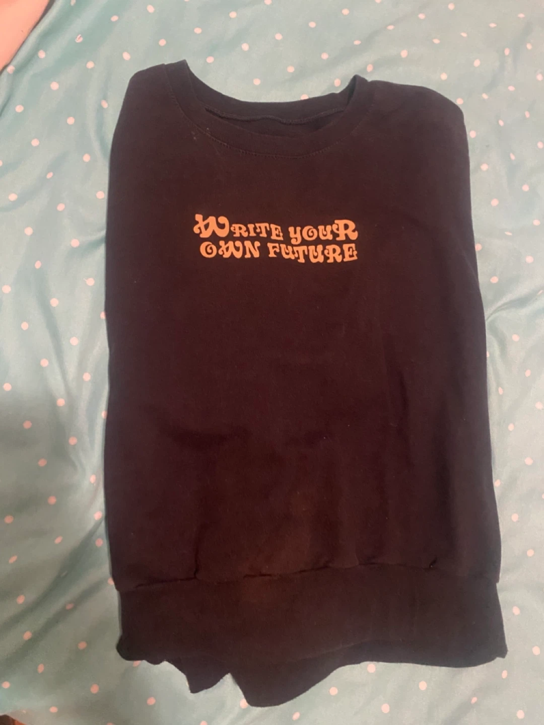 Selling a black sweatshirt with the text "Write Your Own Future" on the front. It's in great condition and ready for a new owner!