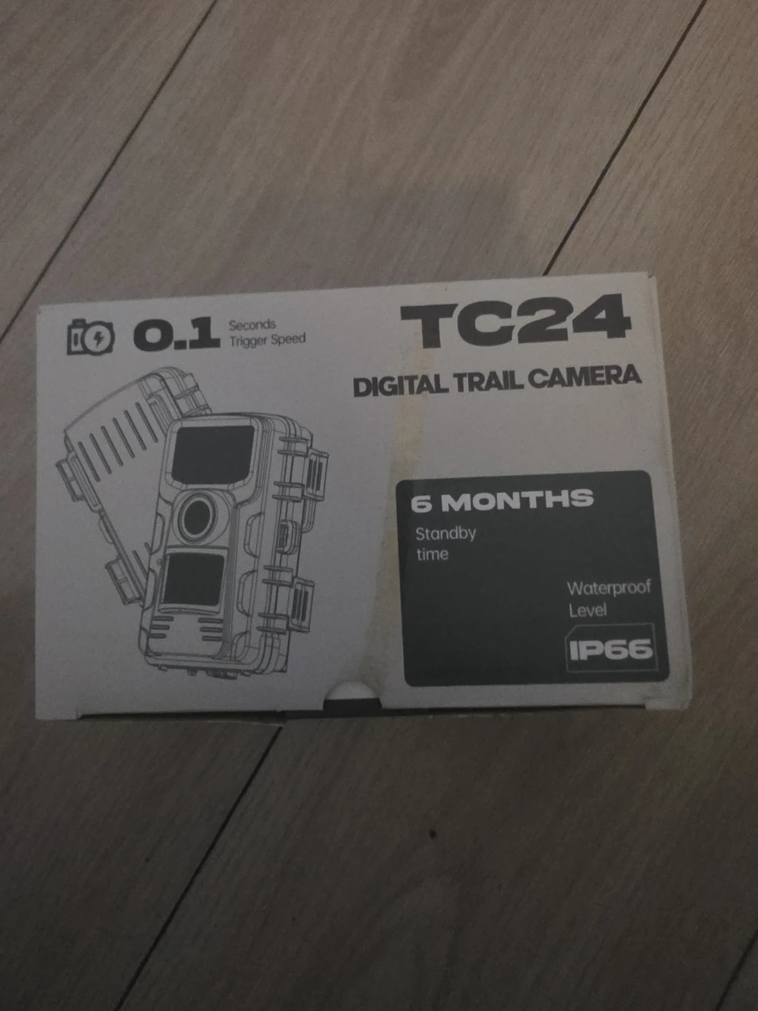 Selling a brand new TC24 Digital Trail Camera! It's still in its original box and ready for use. It features a 0.1-second trigger speed and a 6-month standby time. It's also waterproof with an IP66 rating.