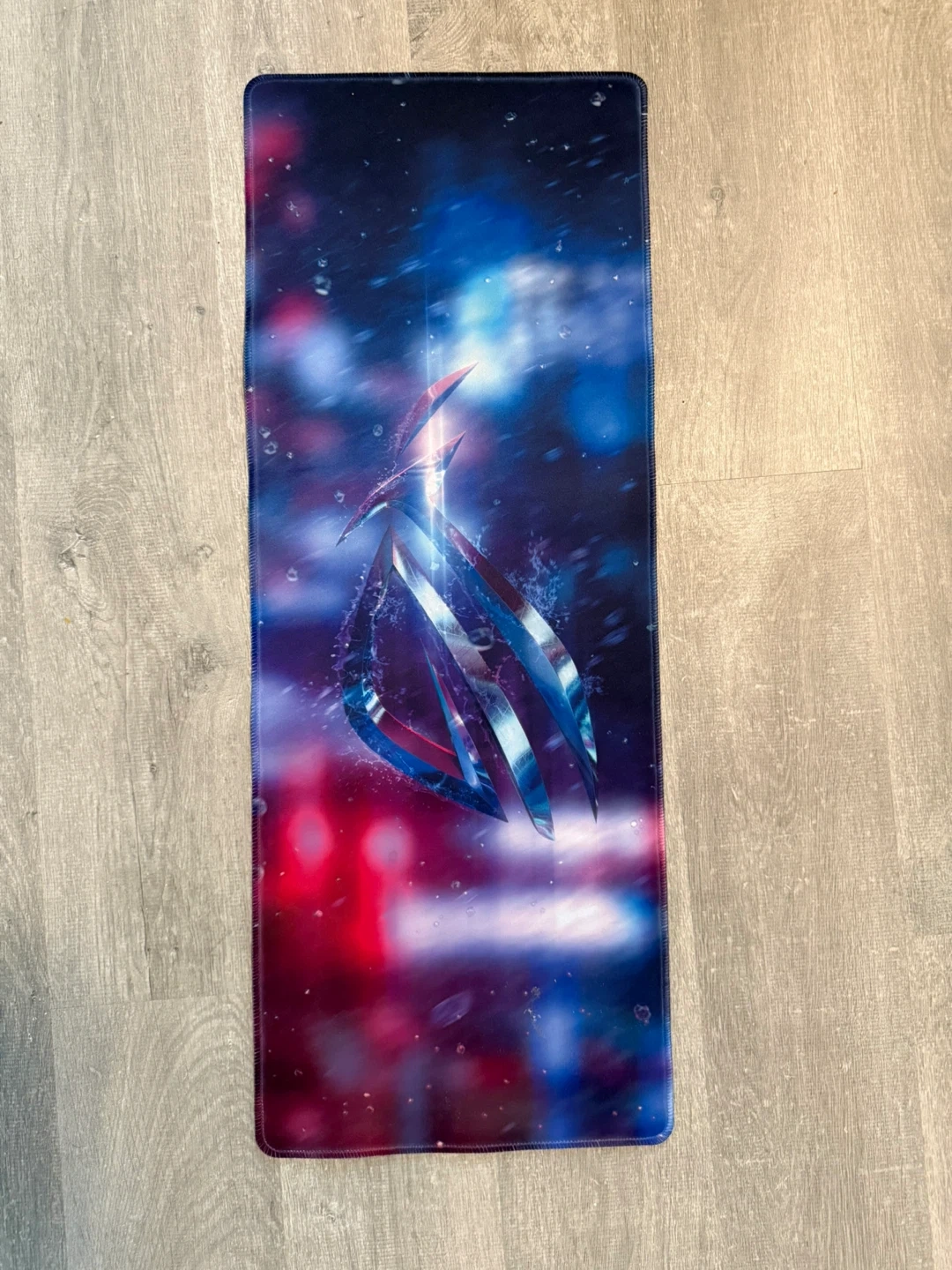 Selling an ASUS ROG desk mat. It's in great shape and ready to level up your gaming setup! The design features the iconic ROG logo with a vibrant, eye-catching aesthetic. Perfect for any gamer looking for a stylish and functional surface