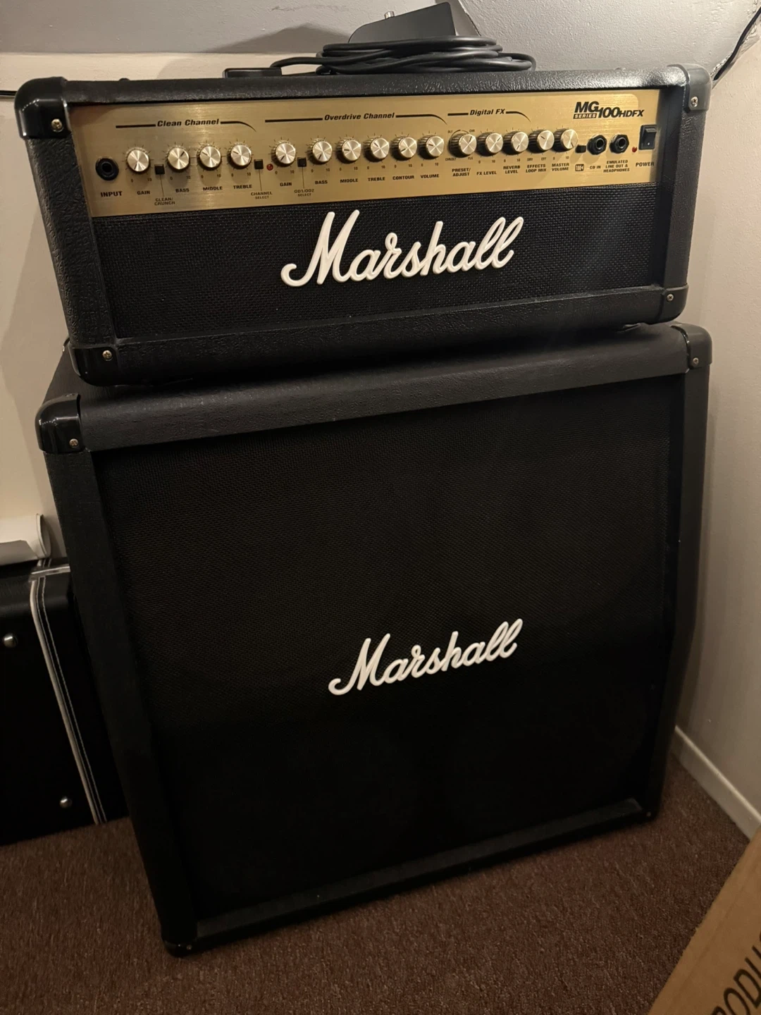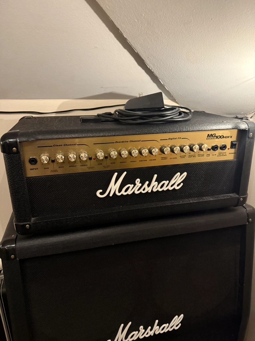 Selling a Marshall MG100HDFX amplifier head along with its speaker cabinet. This setup is perfect for anyone looking to get that classic Marshall sound. It was barely used and is in great condition.
