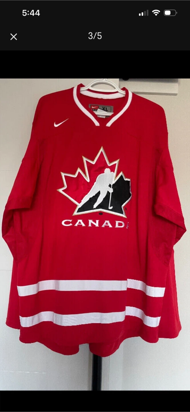 Selling a Nike Canada hockey jersey in size XL. It's in great condition and features the iconic maple leaf design with a hockey player silhouette. Perfect for any hockey fan!