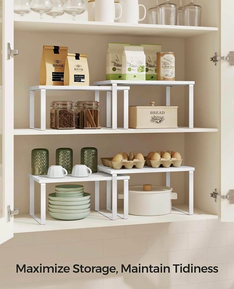 Upgrade your kitchen organization instantly with these stylish and practical SONGMICS cabinet organizer shelves. Perfect for cabinets, countertops, or pantries — ideal for spices, dishes, mugs, or small appliances. Clean modern look in Cloud White & Snow White fits any kitchen décor.