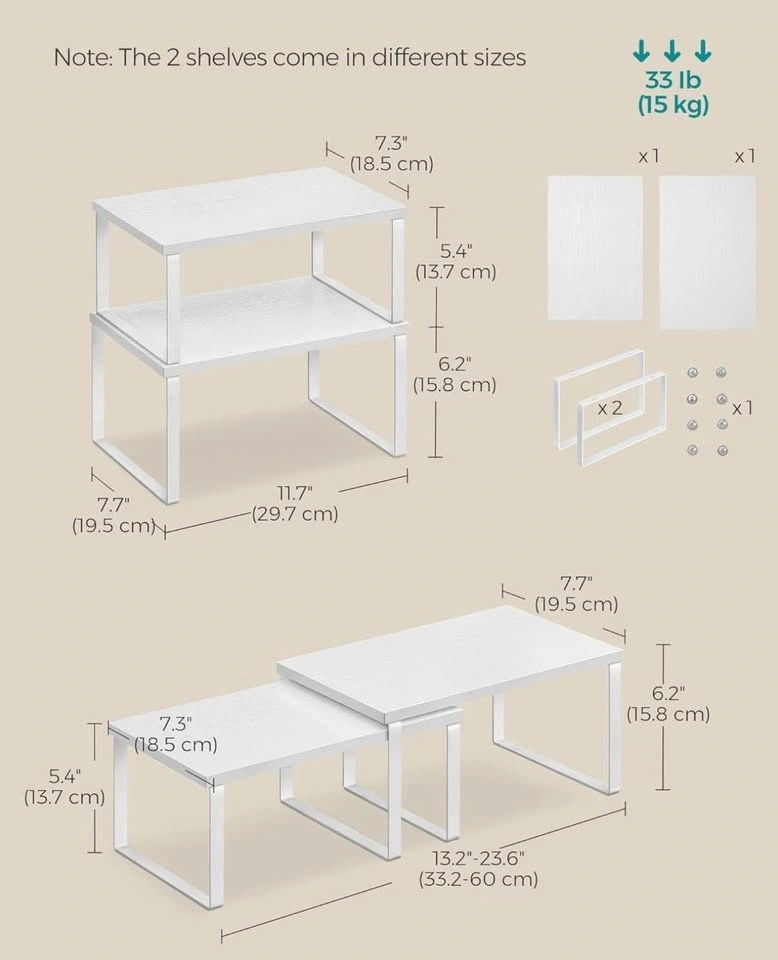 • Set of 2 cabinet organizer shelves