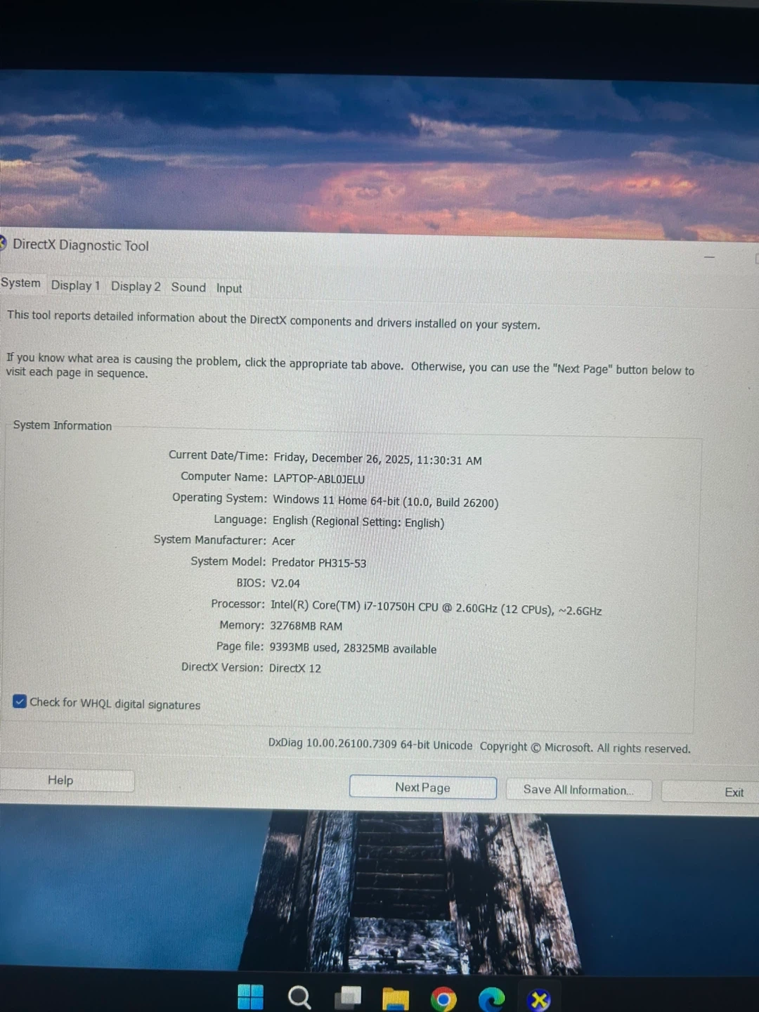 - Intel(R) Core(TM) i7-10750H CPU @ 2.60GHz