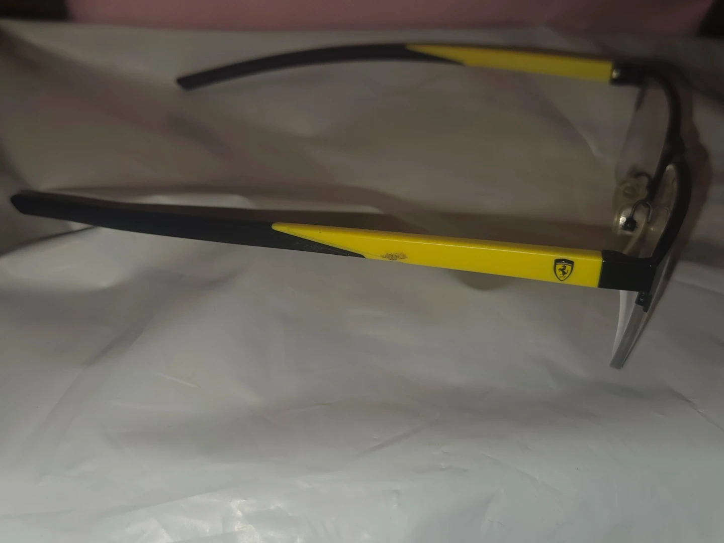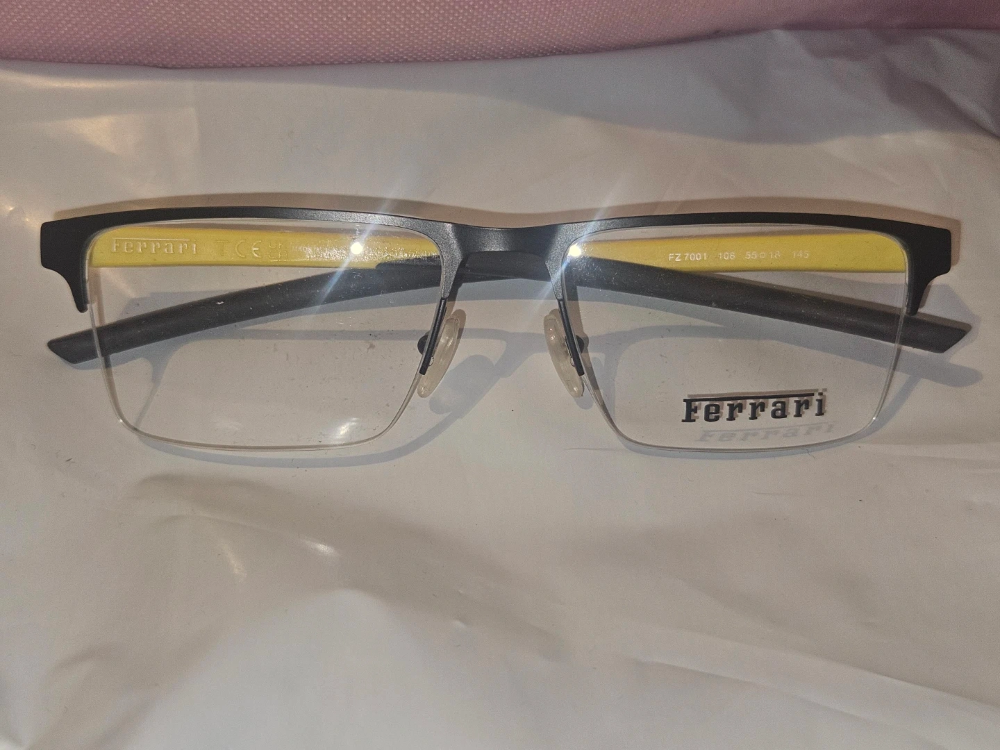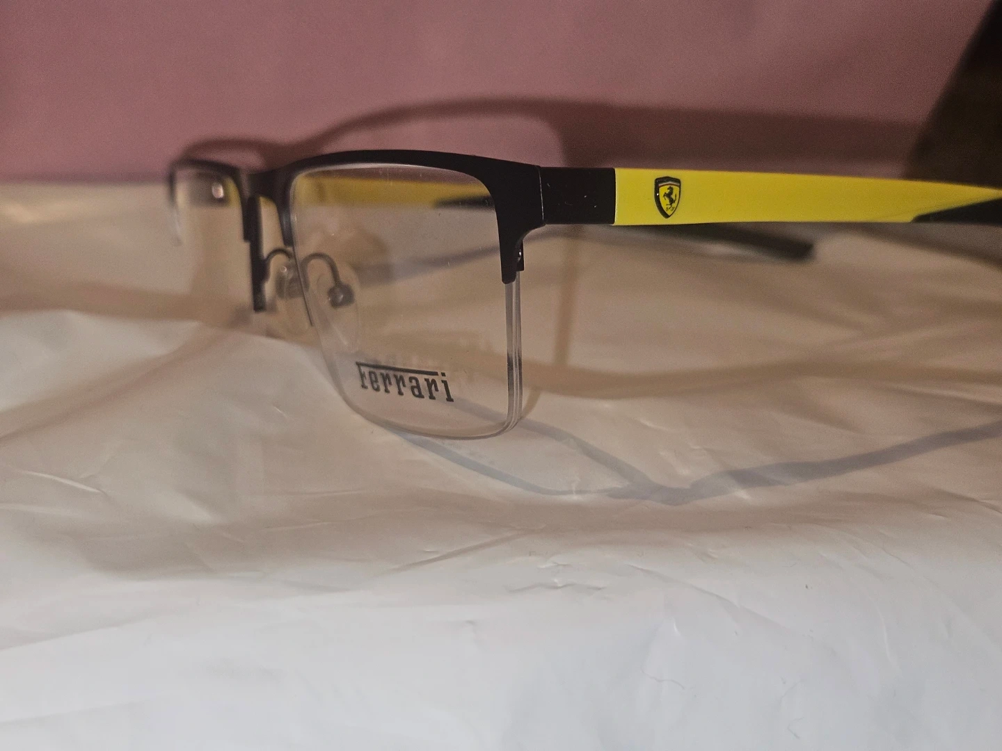 Selling a pair of Ferrari eyeglasses! They feature a sleek black frame with vibrant yellow accents silicon grip soft plastic the arms. The Ferrari logo is subtly displayed. Great for adding a touch of style to your everyday look, semi rim, suitable for all prescription.
