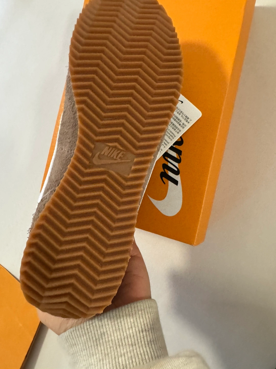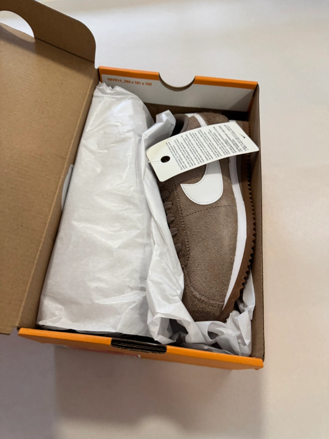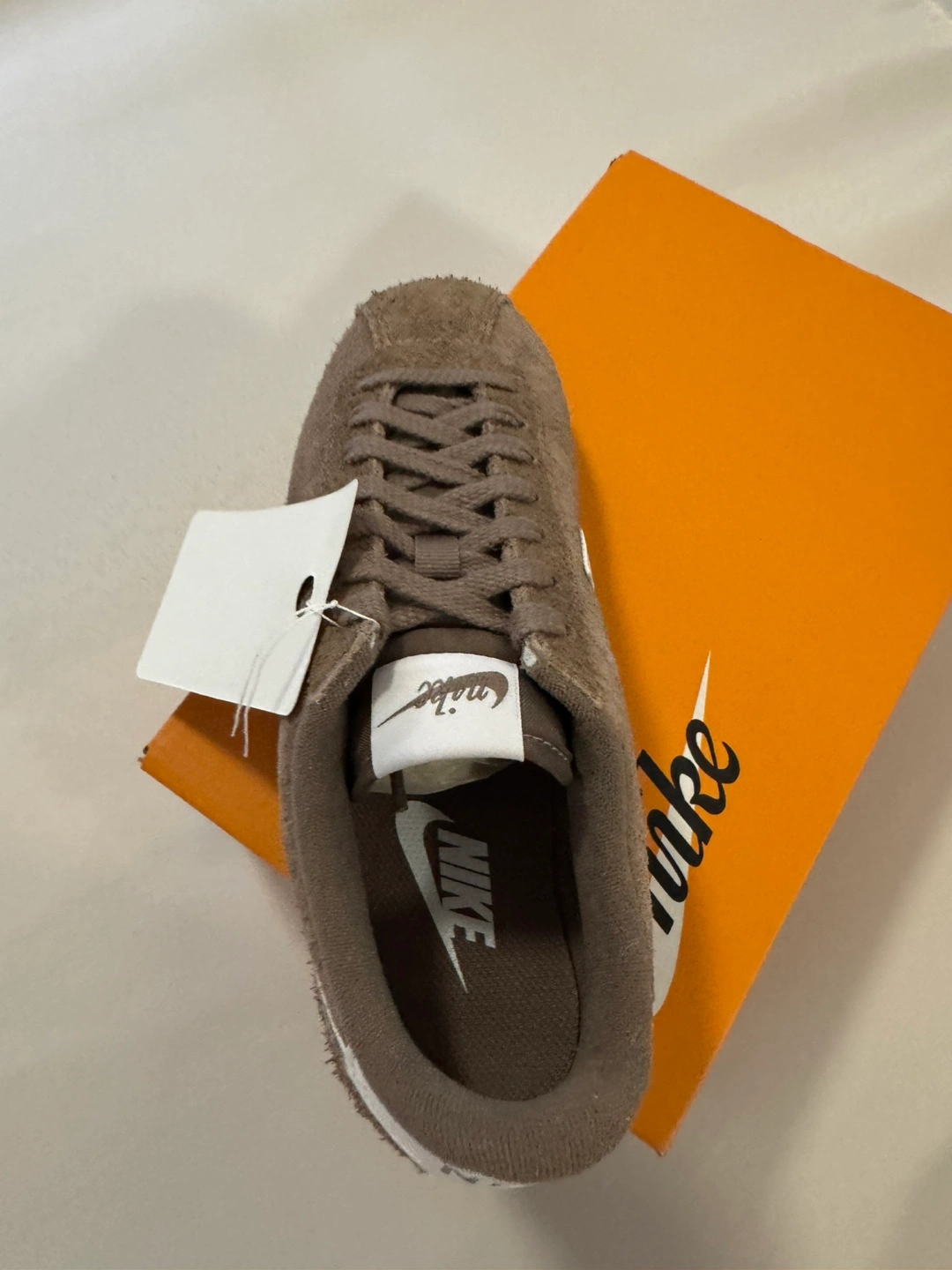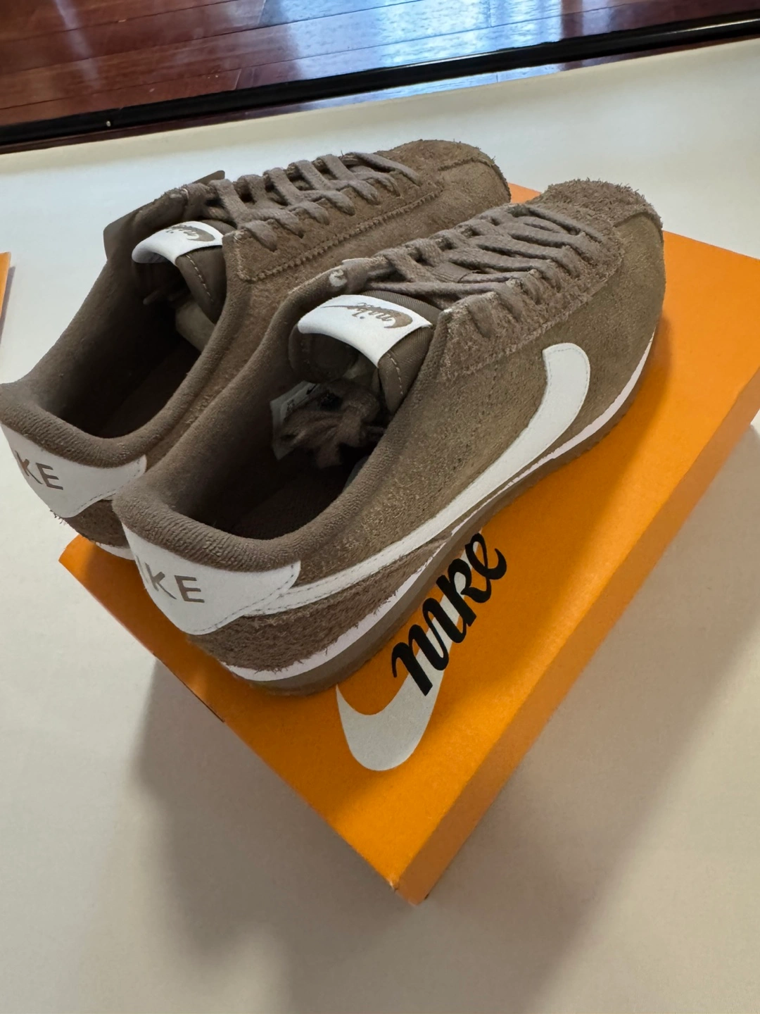 Selling a pair of Nike Cortez shoes in brown suede. They are in great condition and come with the original box. These shoes are stylish and comfortable, perfect for everyday wear!