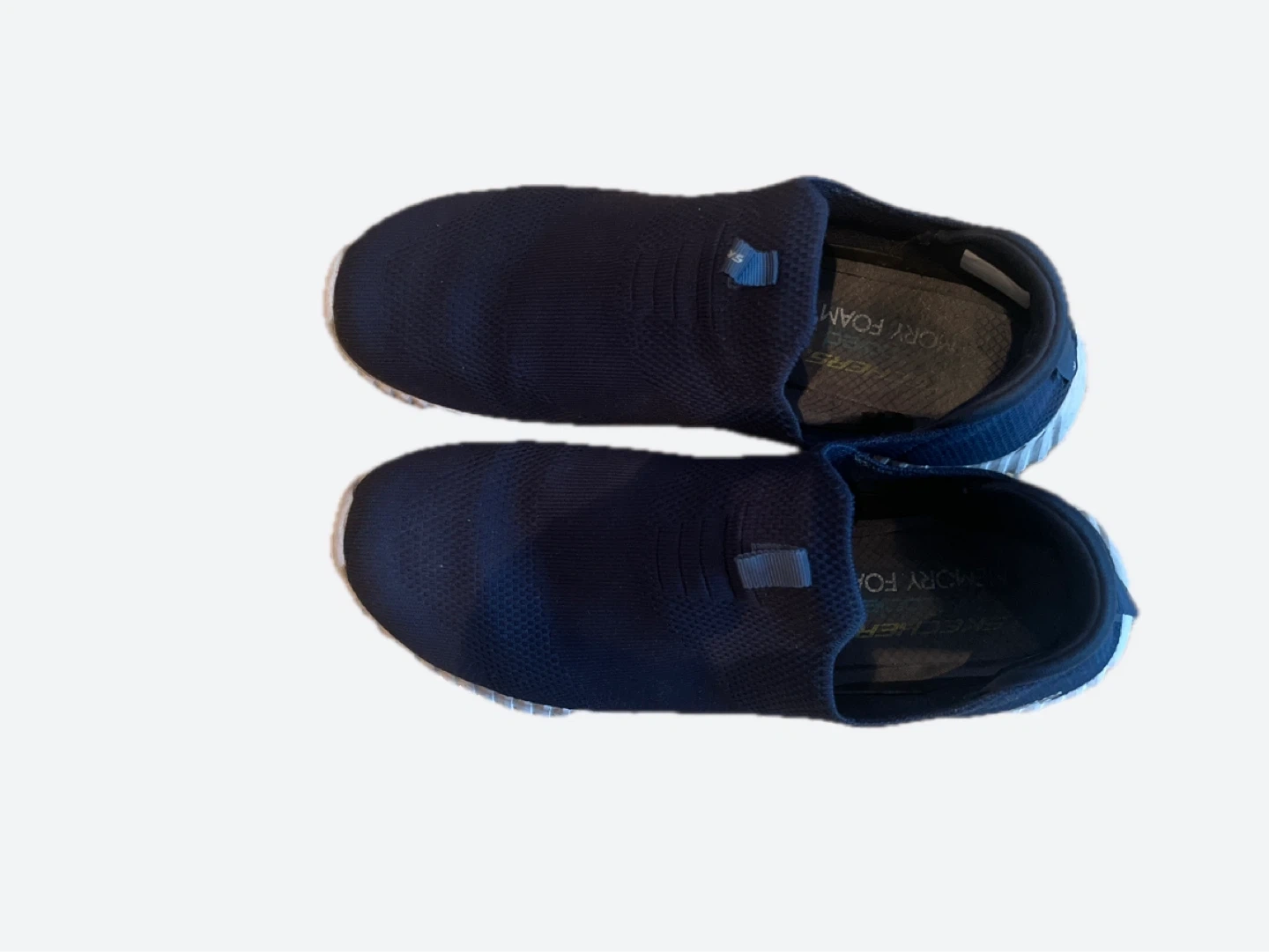 Selling a pair of Skechers Hands Free Slip-ins Go Walk Arch Fit shoes! They're super comfy and easy to slip on and off. The arch fit provides great support for all-day wear. They are a navy colour with a white sole.