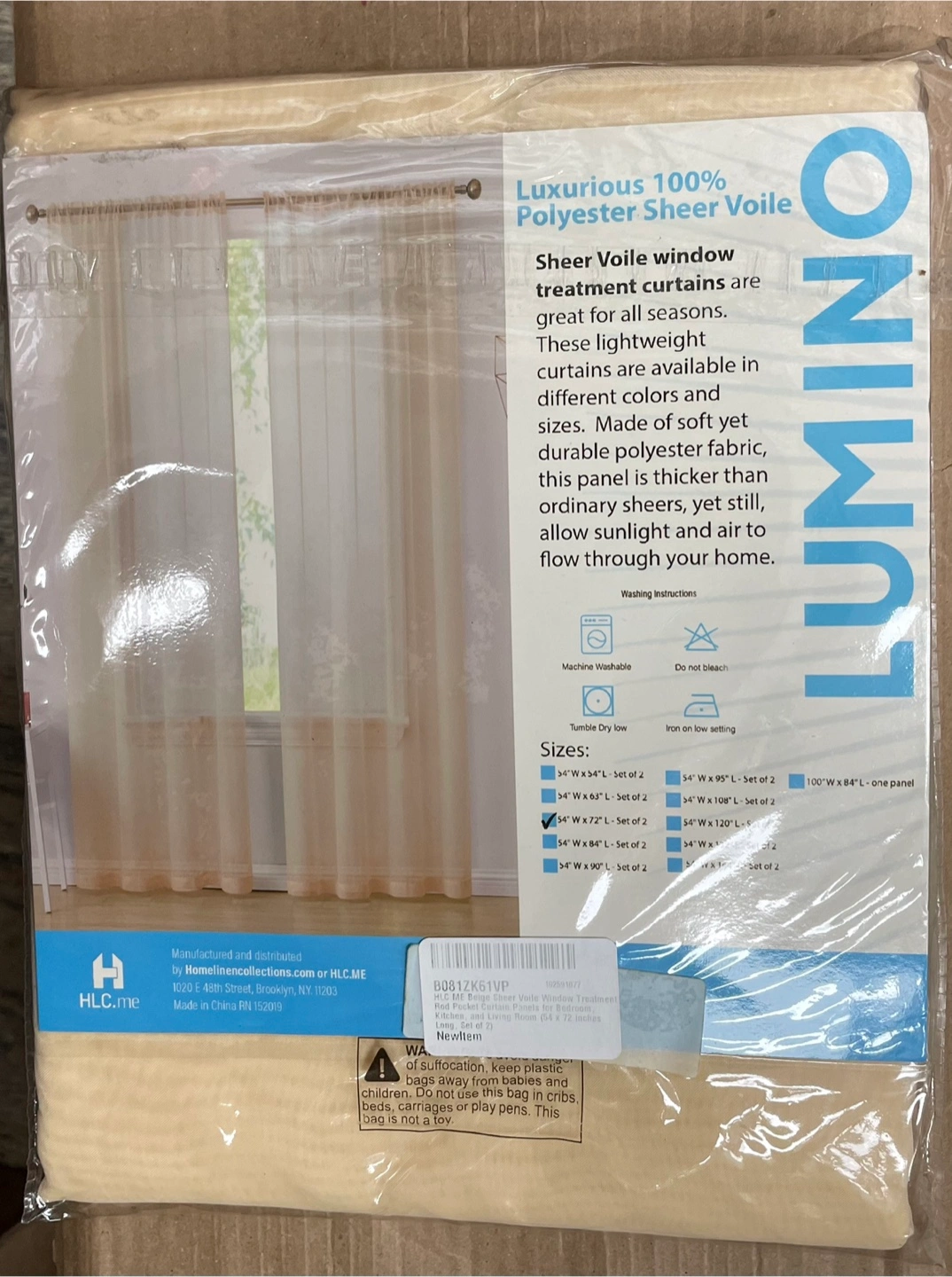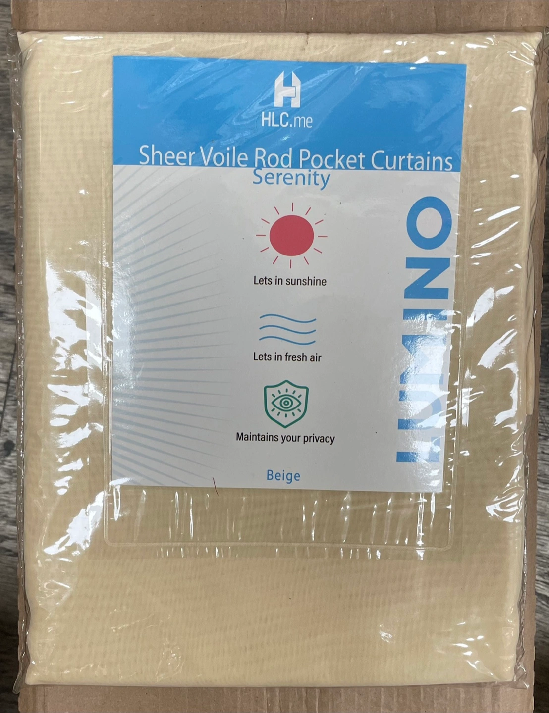 Brand new HLC.me sheer voile rod pocket curtains in beige! These Serenity curtains let in sunshine and fresh air while maintaining your privacy. They're made of soft yet durable polyester fabric, allowing sunlight and air to flow through your home. The package includes two 54" W x 72" L panels.