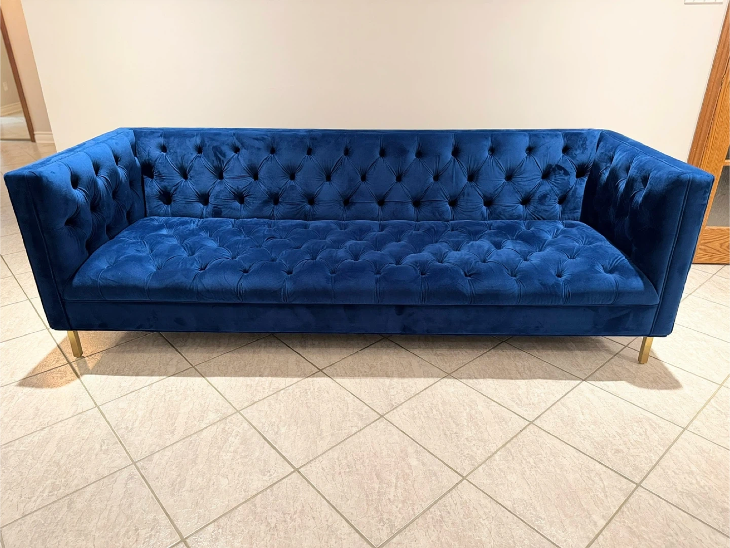 CB2 Loveseat AND large Blue Velvet Tufted Sofa