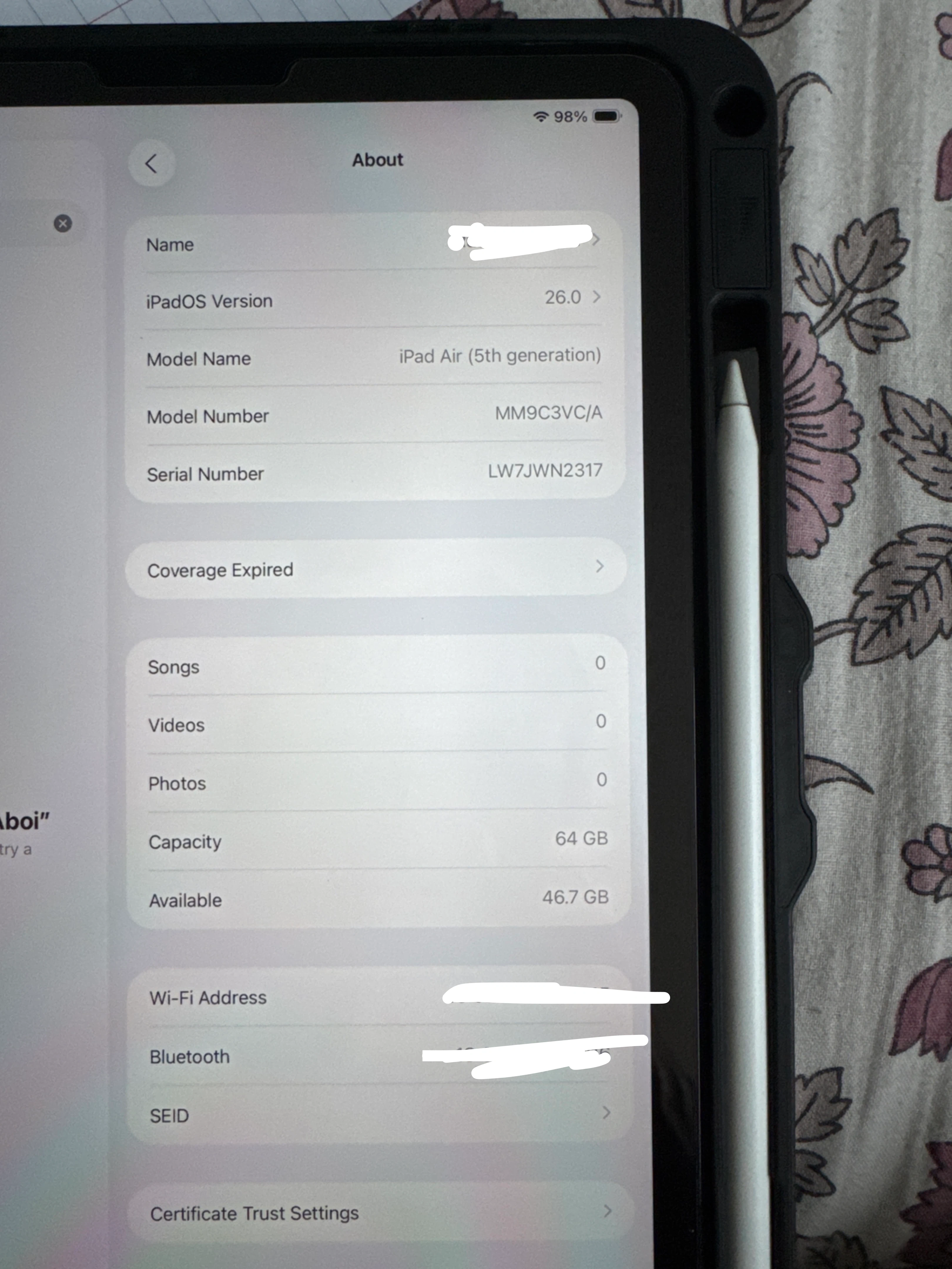 Selling my iPad Air (5th generation). It comes with an Apple Pencil and Targus Case 360