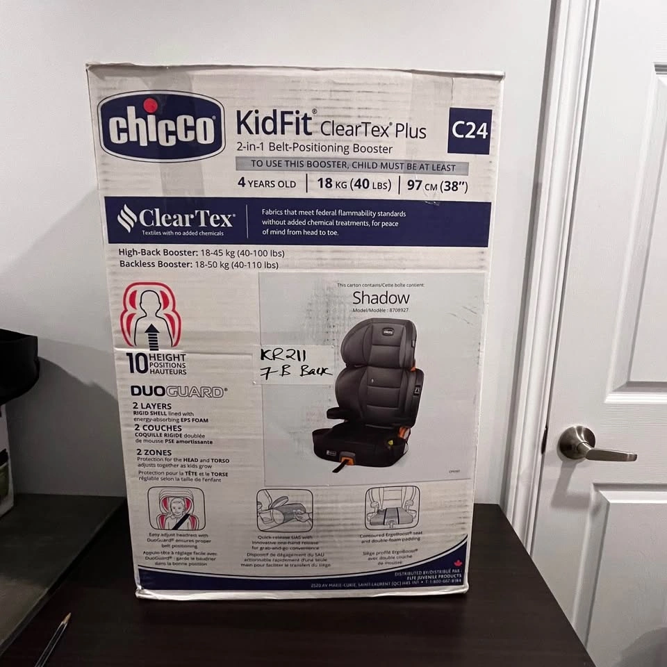 New Chicco KidFit ClearTex Plus 2-in-1 Belt-Positioning Booster Car Seat, Backless and High Back Booster Seat, for Children Aged 4 Years and up and 40-110 lbs. - Shadow/Black & Grey