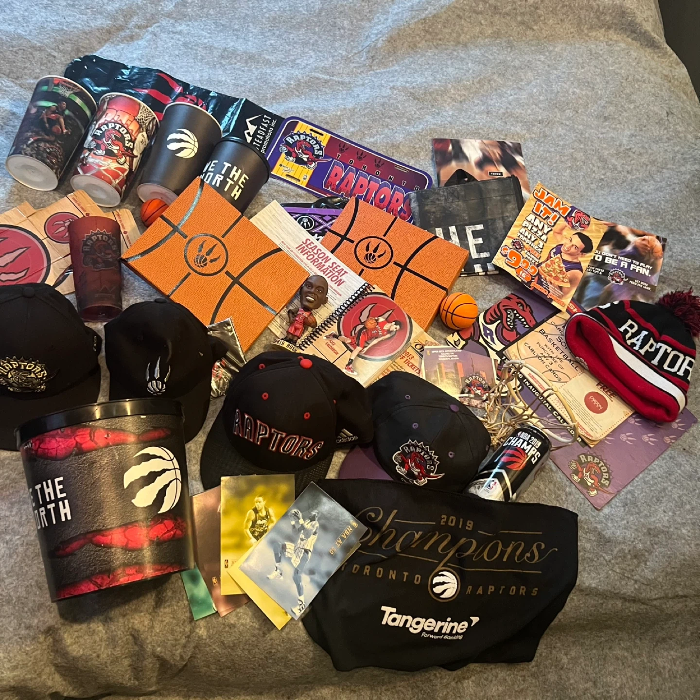 Selling a collection of Toronto Raptors souvenirs! Includes cups, hats, notebooks, Brand new Chris Bosh bobble head . Perfect for any Raptors fan looking to add to their collection plus added bonus’s.