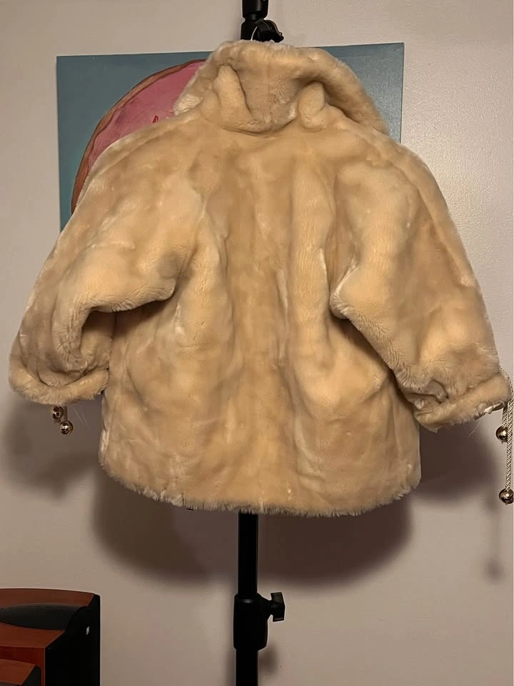 Adorable luxury-style faux fur coat with gold bell details π