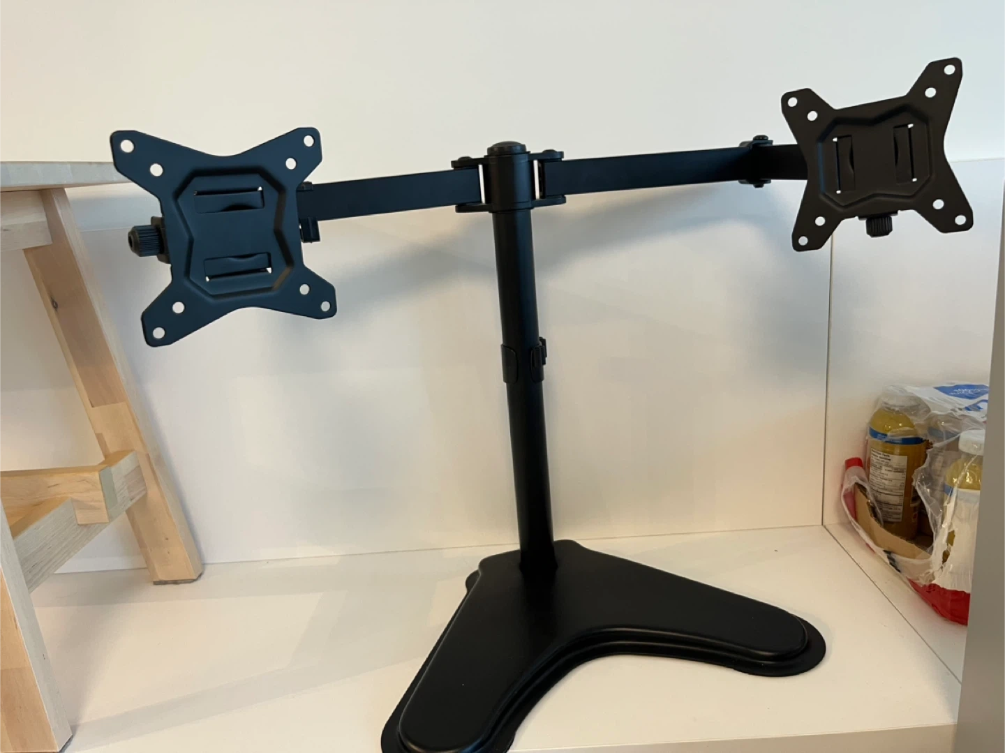Selling a dual monitor desk mount stand in black. It's in great condition and ready to help you optimize your workspace!