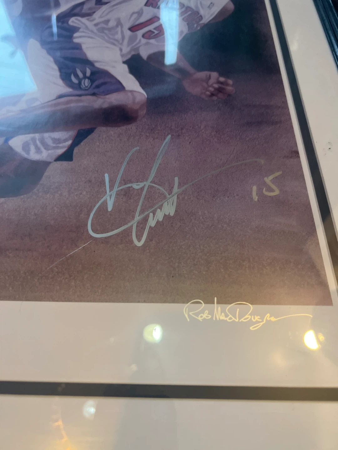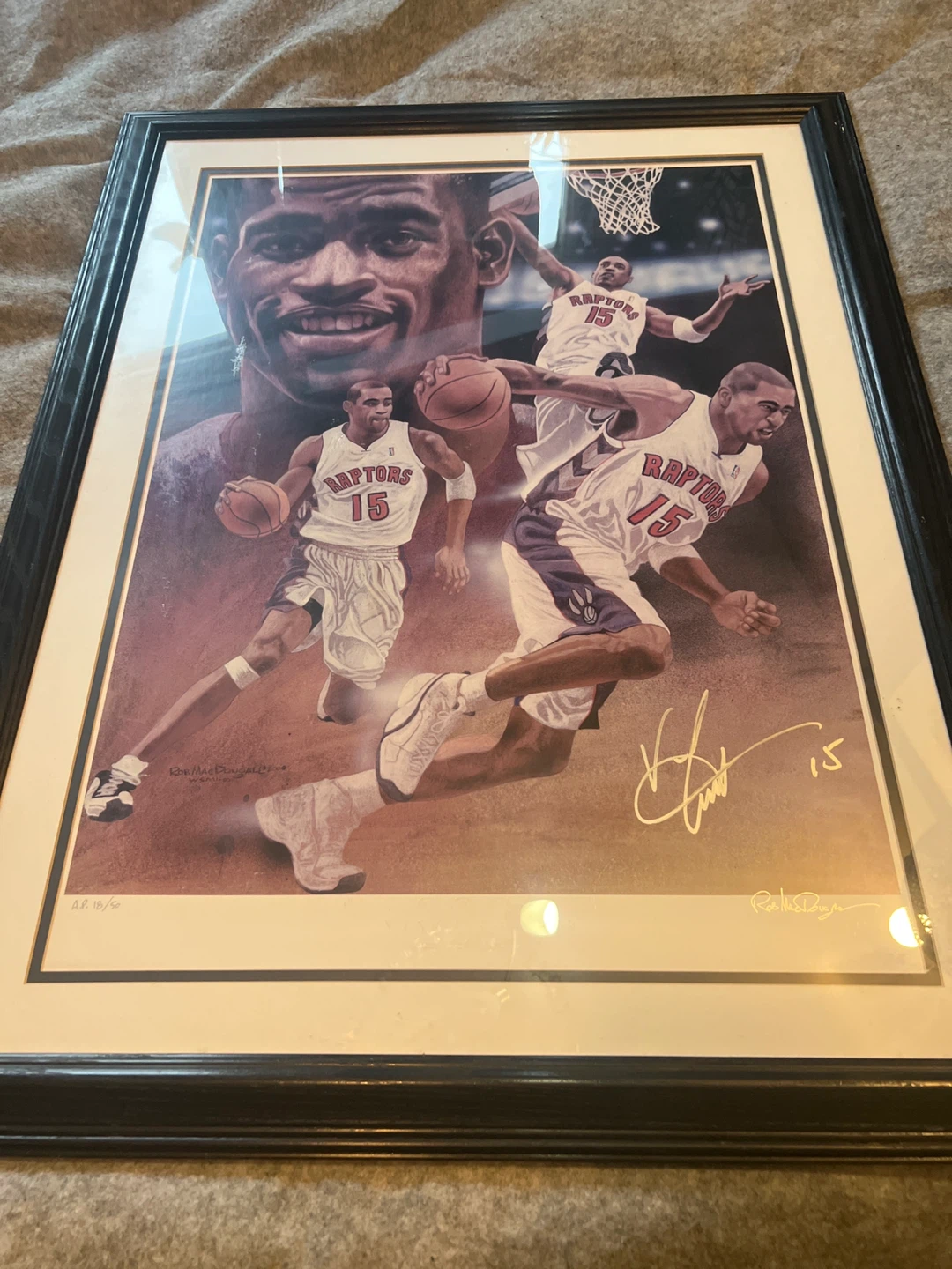 I'm selling a framed print of Vince Carter in his Raptors jersey. It's signed by both Vince Carter and the artist, Rob MacDougall. This is print A.P. 18/50