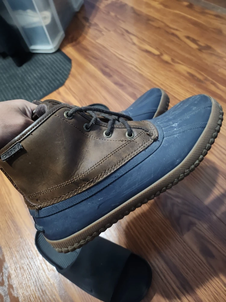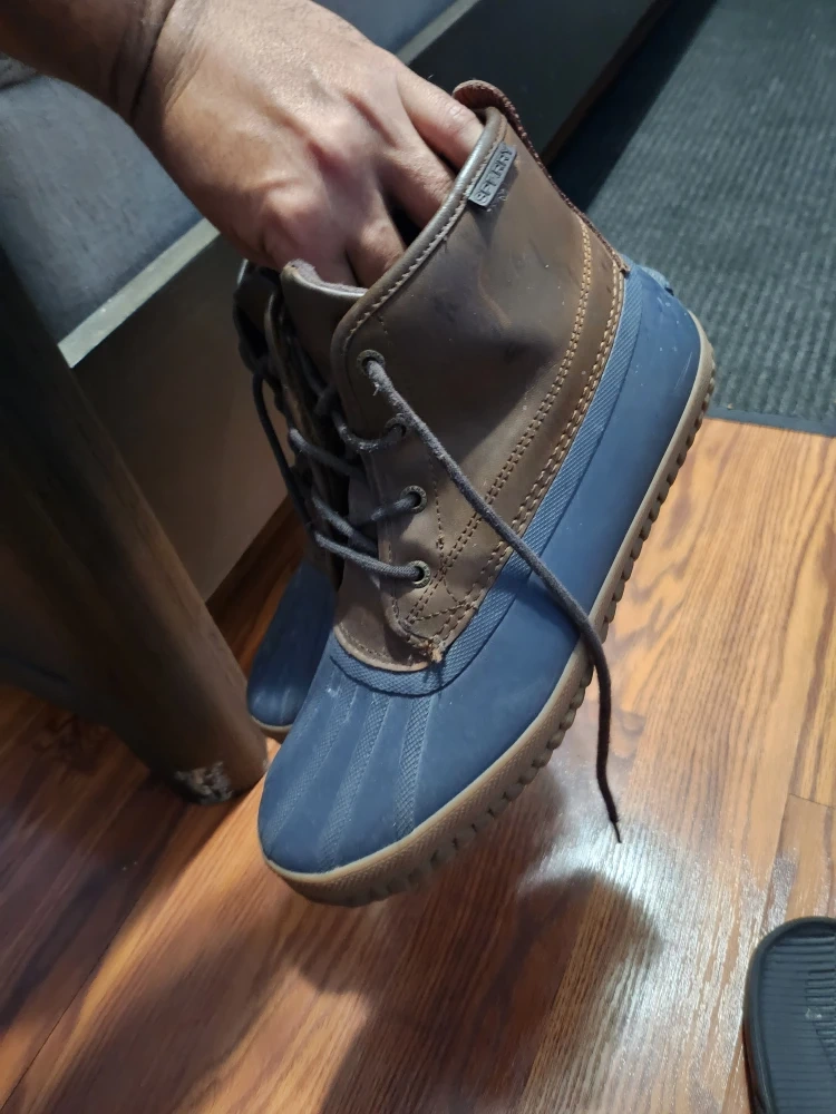Selling a pair of Sperry men's Avenue Duck Boots. They are size 9 and in good condition! These boots are perfect for wet weather and feature a classic duck boot design with a leather and rubber upper. They offer great traction and protection from the elements