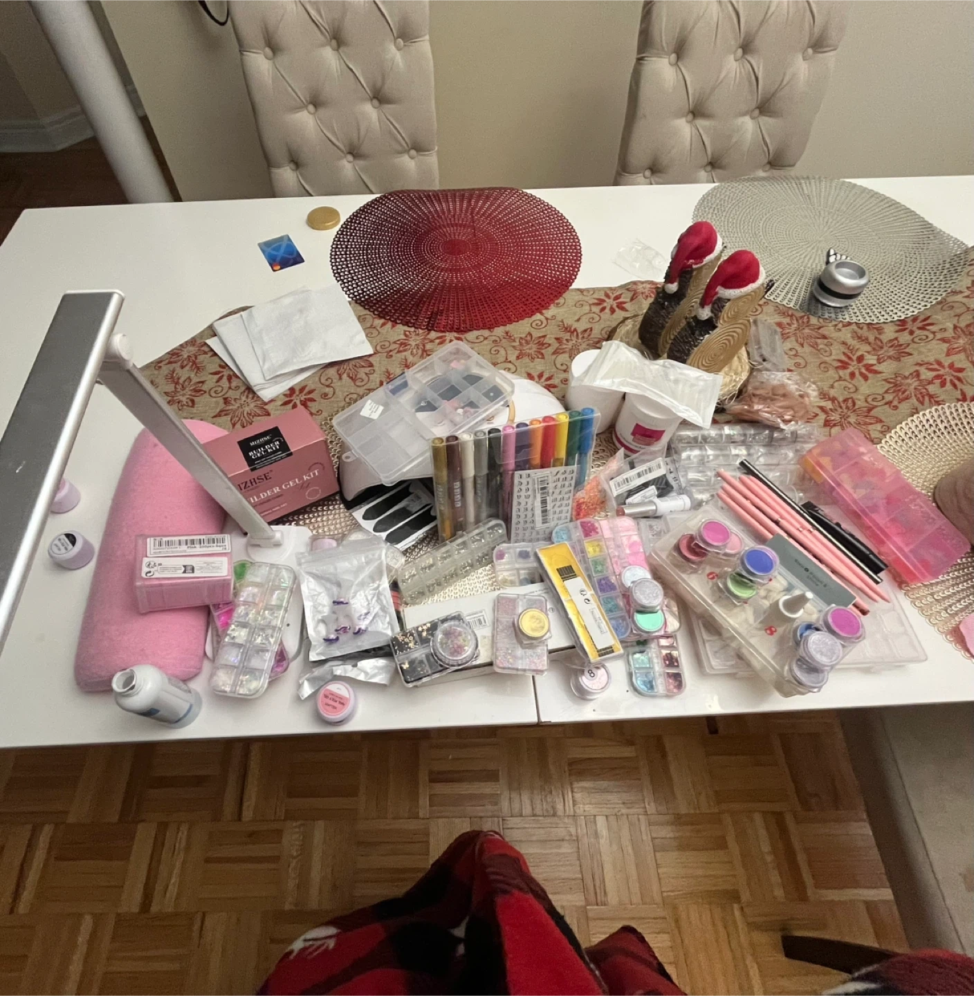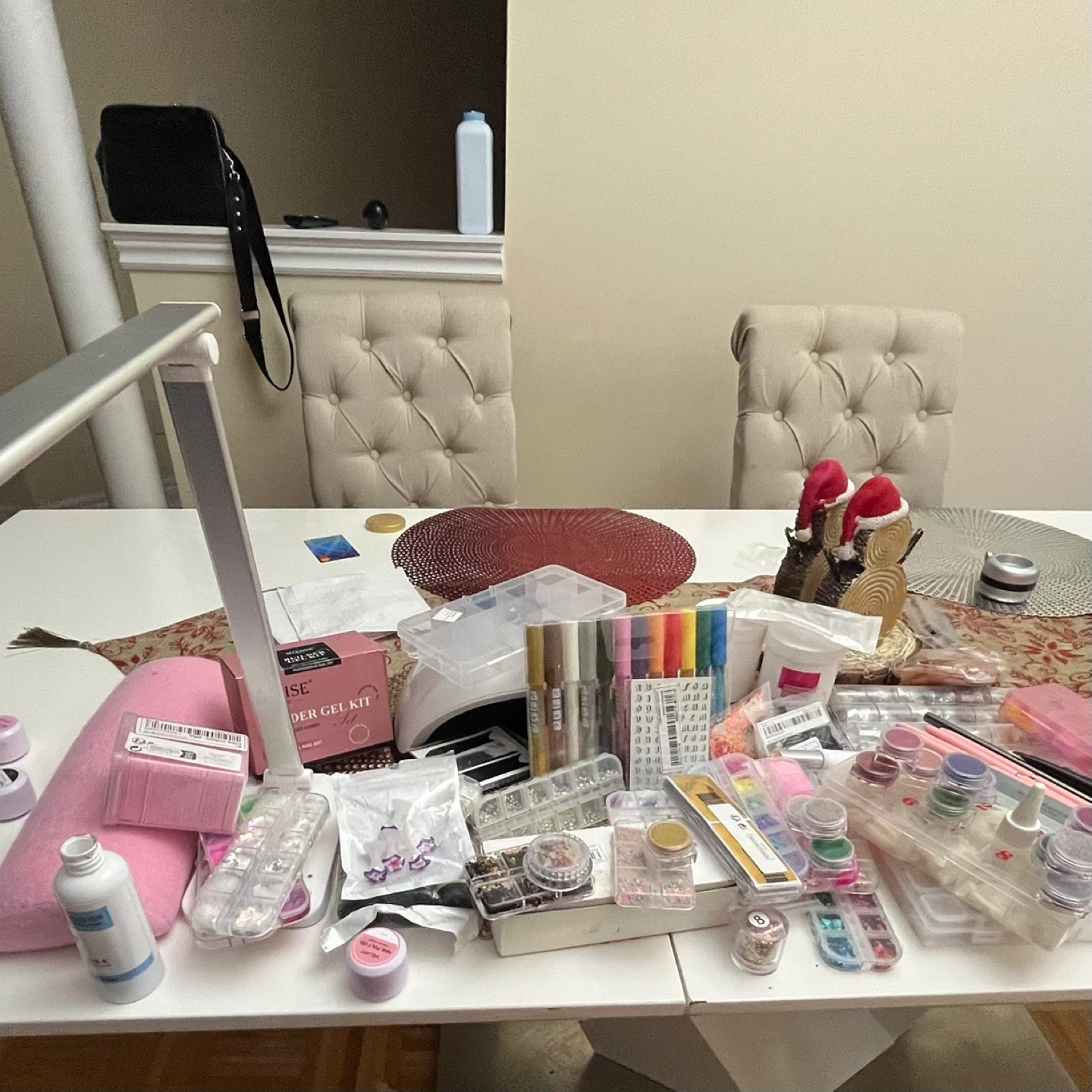 I'm selling all these nail art supplies: brushes, acrylic gels, UV/LED lamps, and LED lamps. Most are new; I used the rest a little for practice. It's exactly as pictured. I don't know the price, but you can make a reasonable offer. It includes everything shown in the photos, including the carrying case. I'm moving back to my country and can't take it with me; I need to sell urgently.