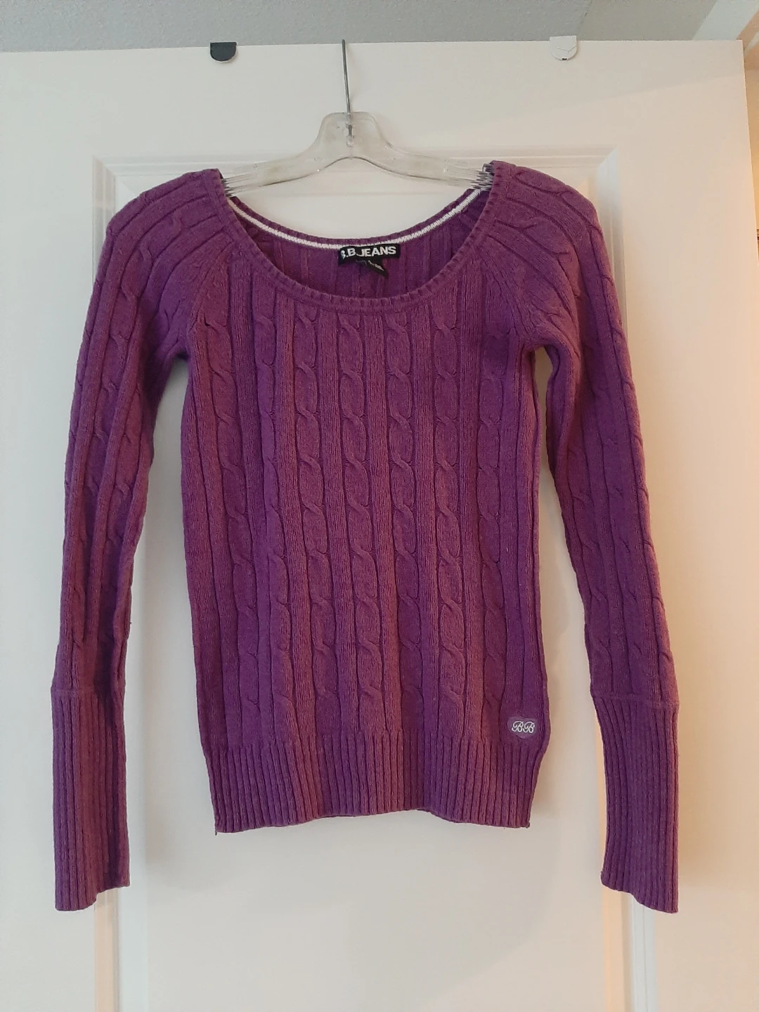 I'm selling a cute purple knit sweater from L.B. Jeans! It's a size small and made of 62% cotton, 26% acrylic, 7% nylon, and 5% angora. It's in great condition and ready for a new home!