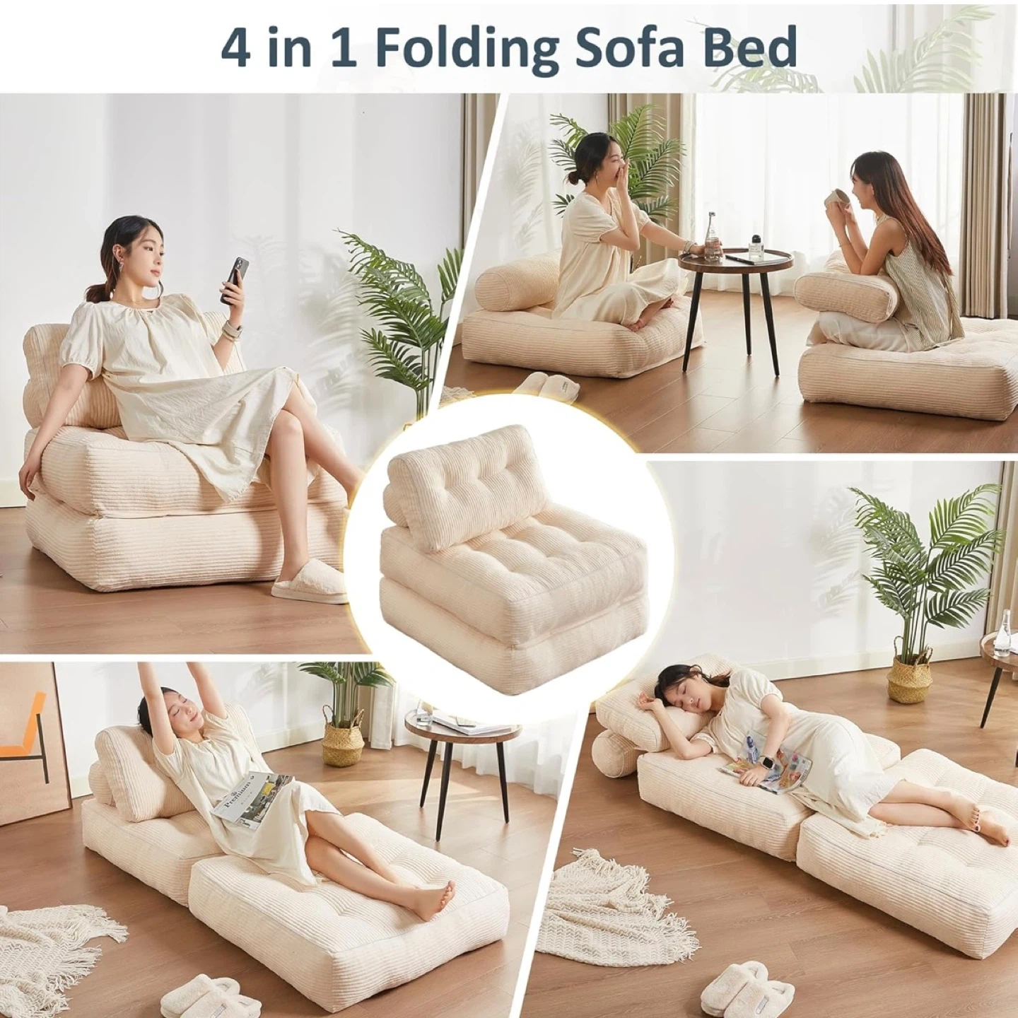 New 4-in-1 folding sofa bed, beige convertible sleeper chair