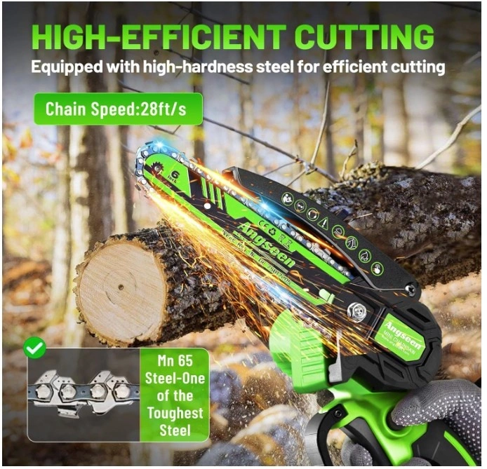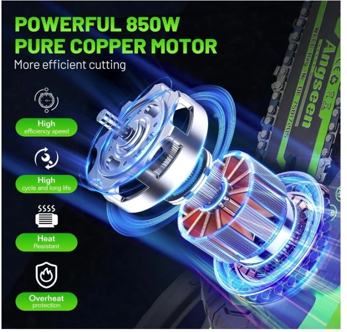 Mini chainsaw 6 inch adapts 3 high-quality chains that have undergone a deep quenching process. An 850W pure copper motor is used, which is very powerful. You will cut more easily and faster.