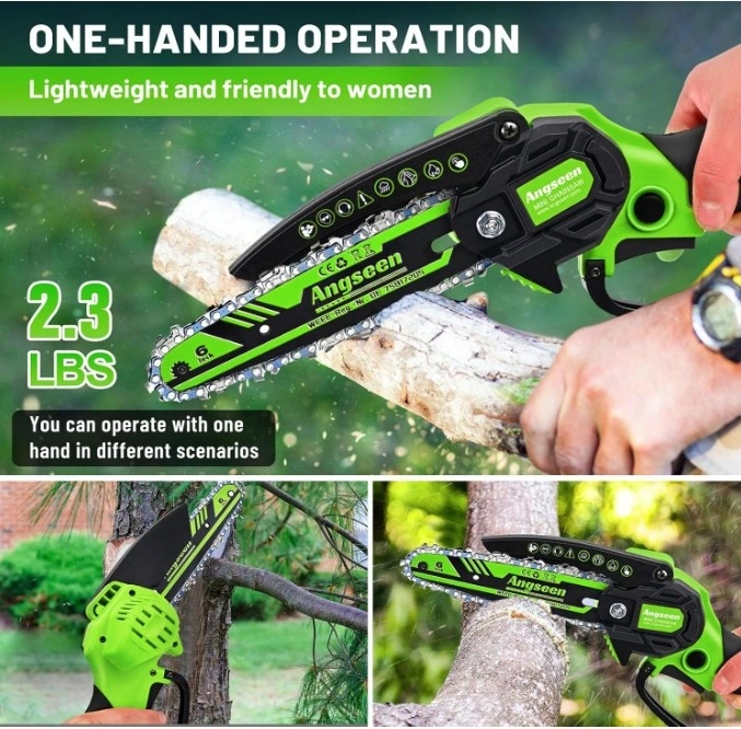 Our electric mini chainsaw weighs only 2.3lb, can be used with one hand. The cordless mini chainsaw is quick and easy to assemble. Perfect for family pruning work, even suitable for women and the elderly.