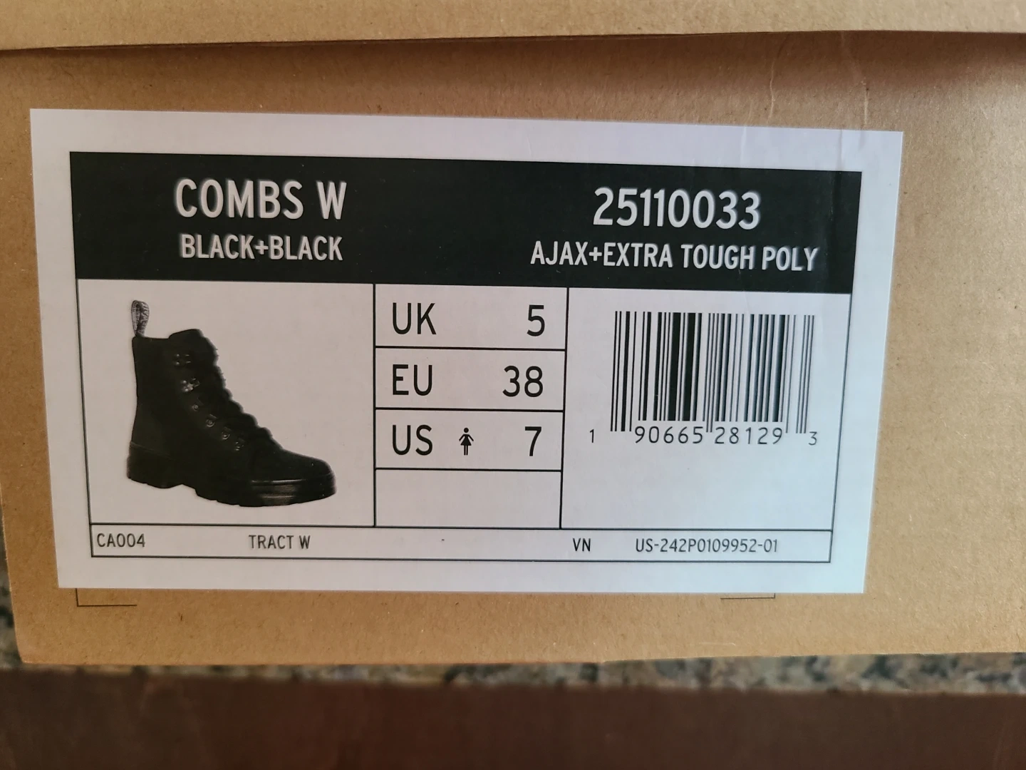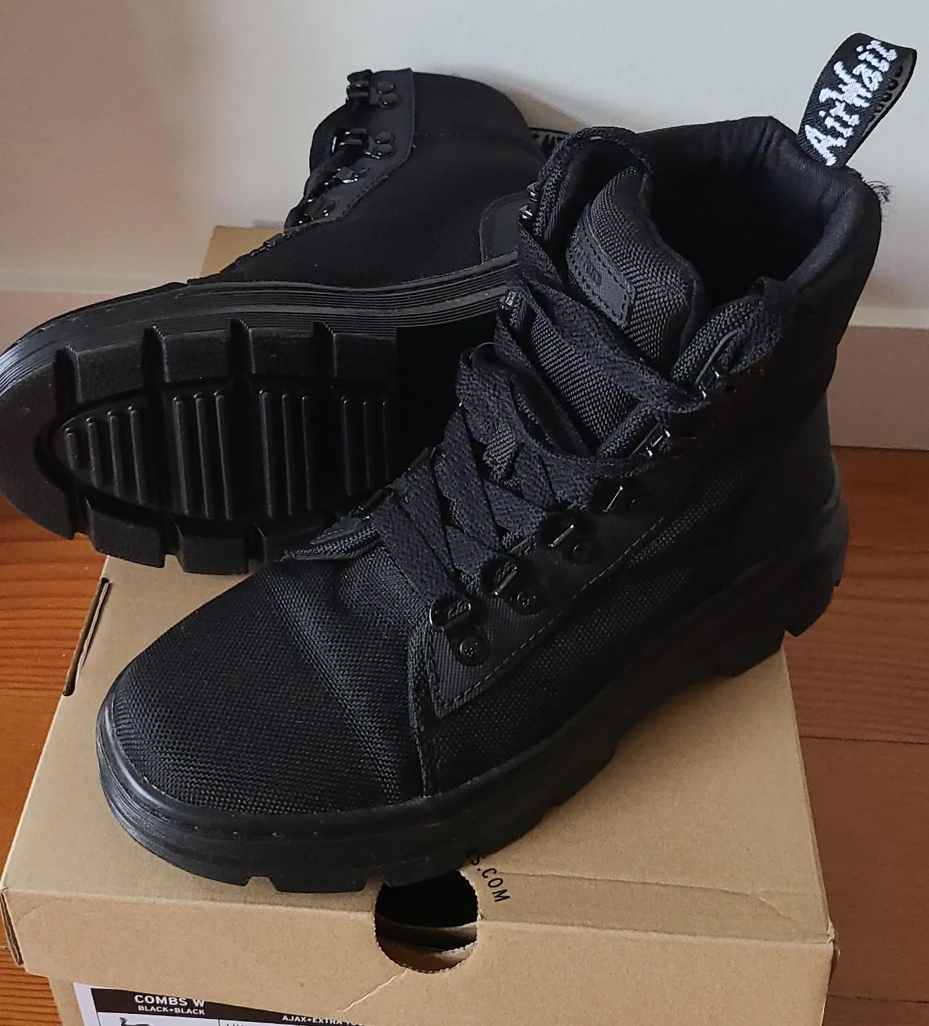 Selling a pair of Dr. Martens Combs W boots in black! They're a US size 7 and come with the original box. The style is called Ajax+Extra Tough Poly. These boots are super durable and stylish, perfect for everyday wear!