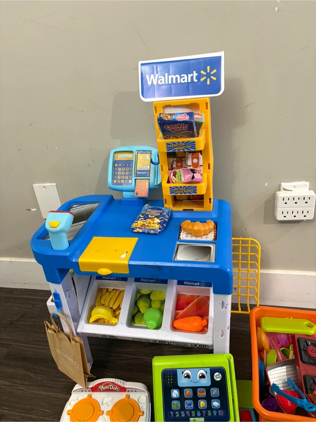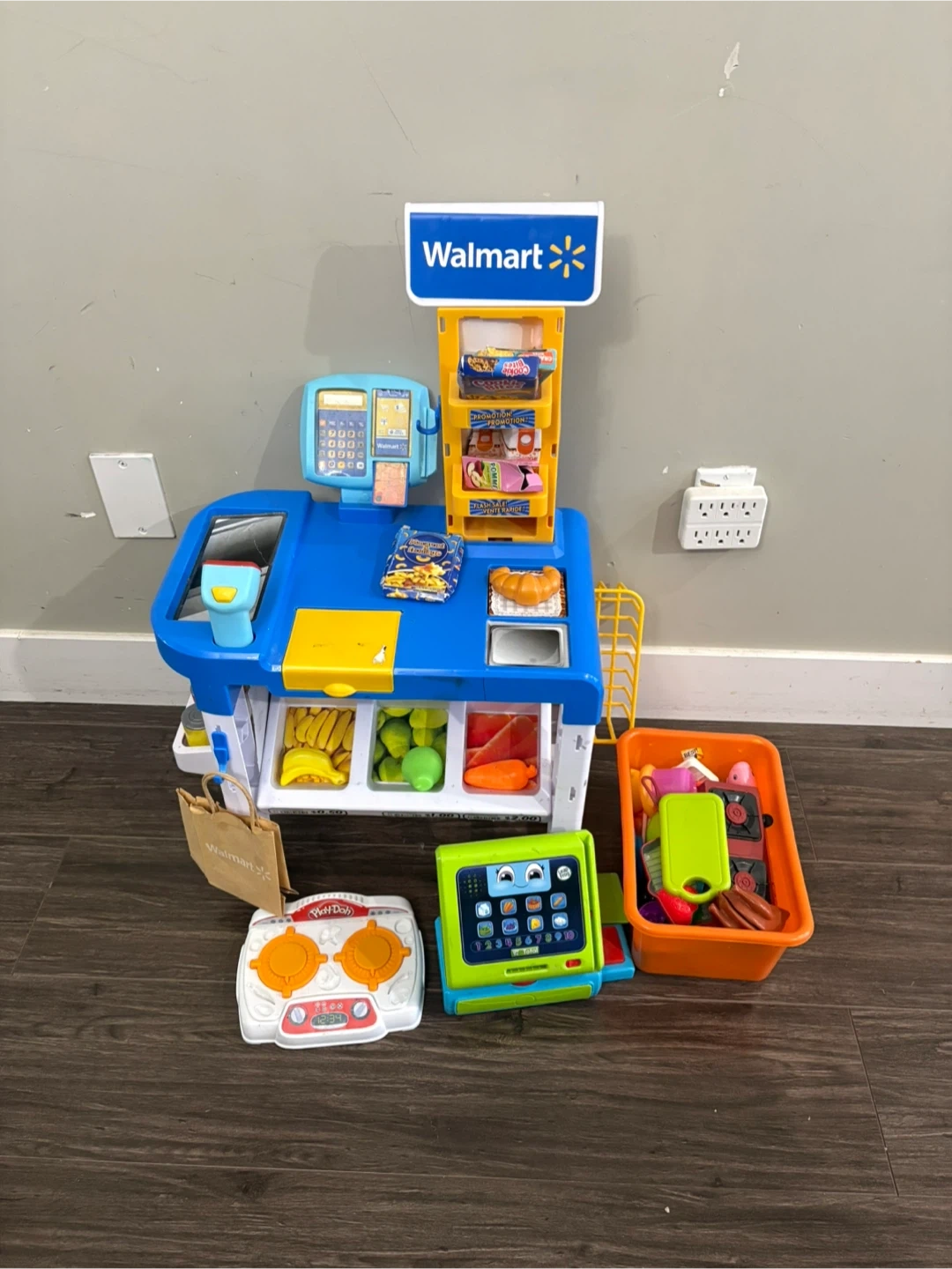 Selling a Walmart pretend play cash register. It comes with various accessories for fun imaginative play! Includes play food, cooking accessories. Great for kids who love to play store!