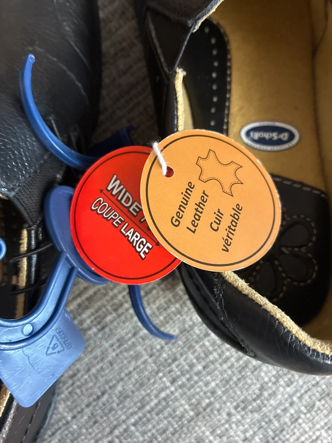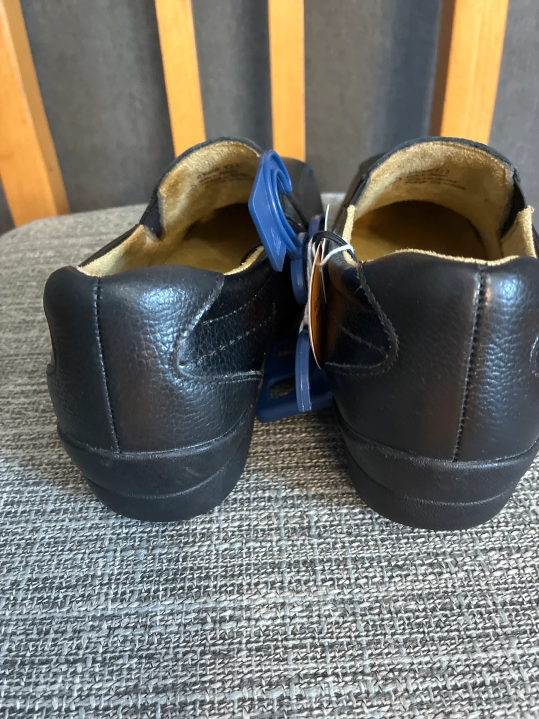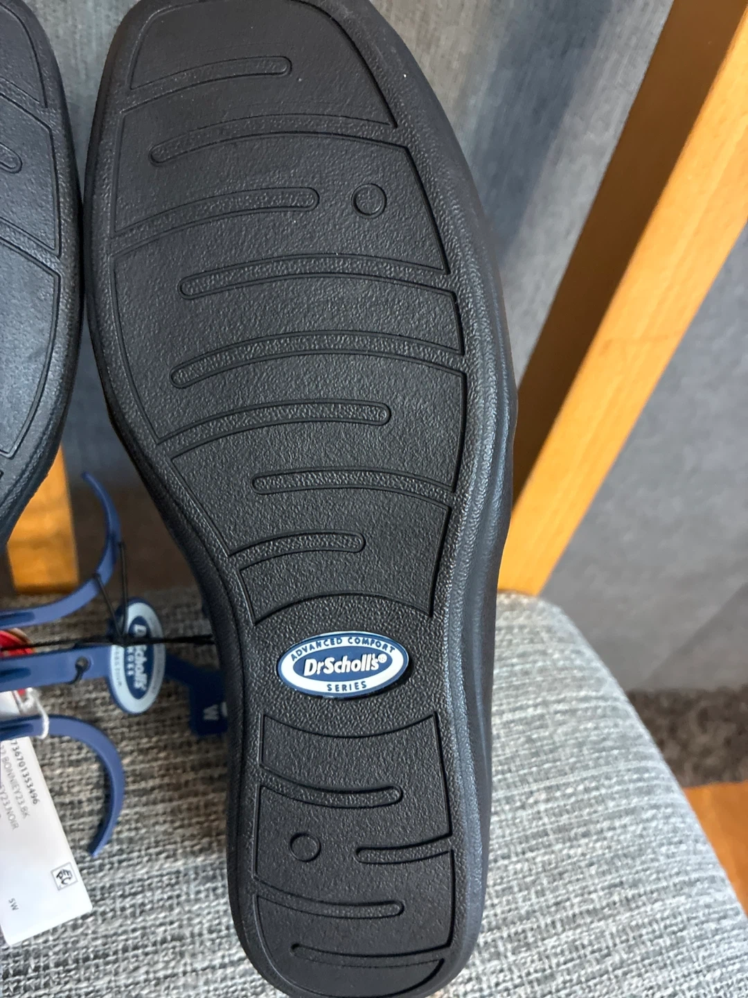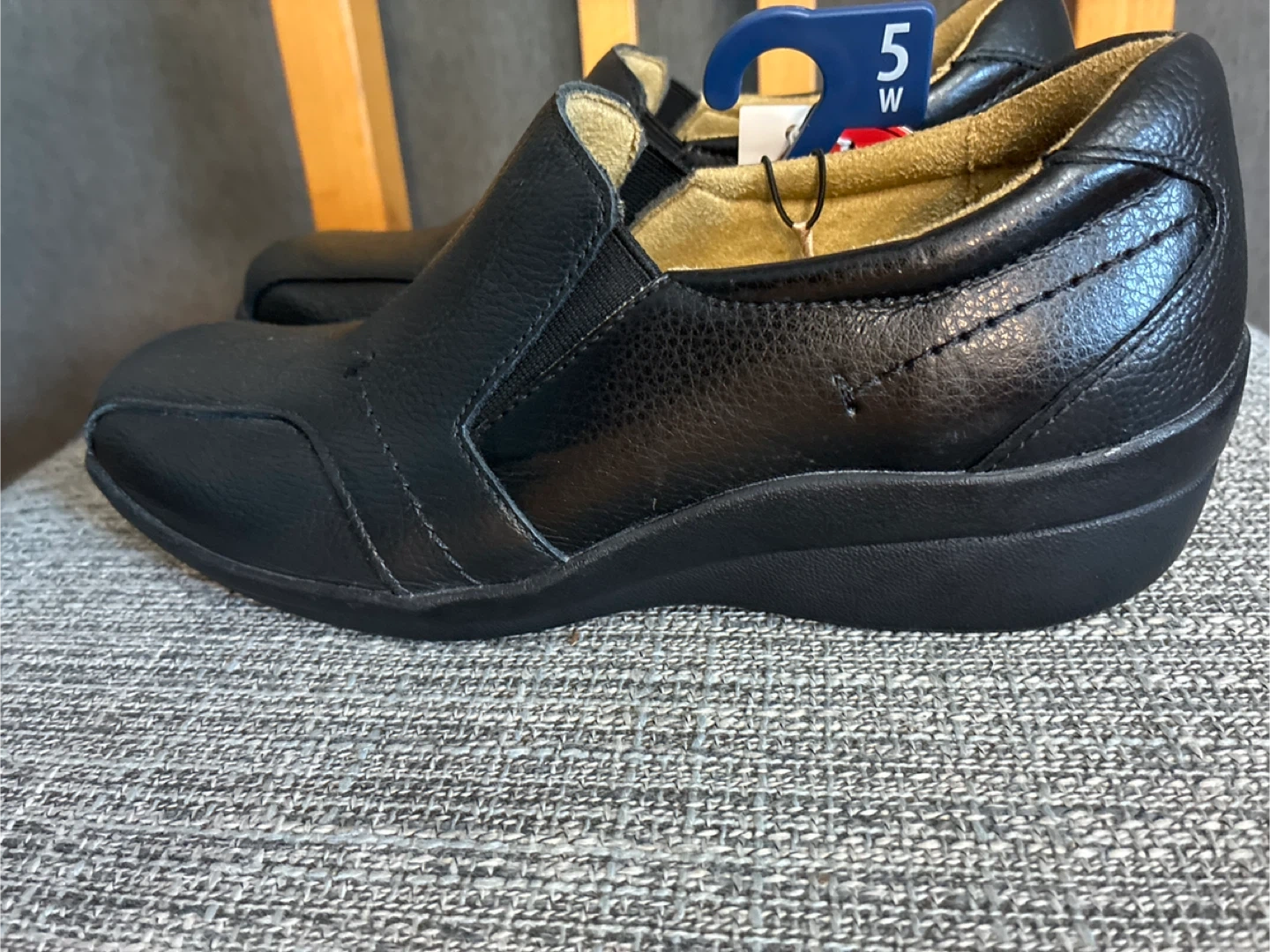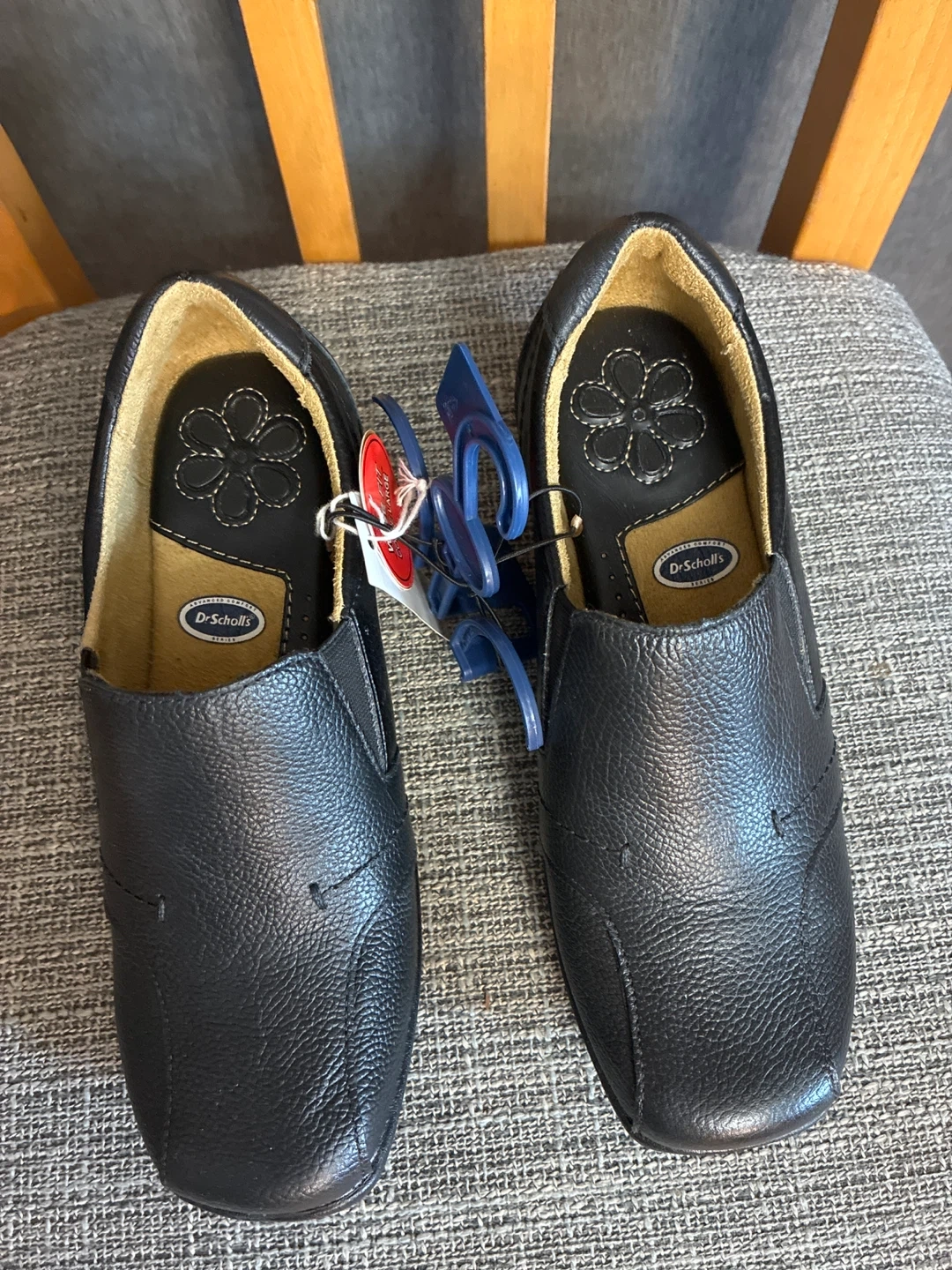 These are a pair of New Dr. Scholl's loafers in black. They are size 5W, and made of genuine leather. They are a wide fit, so they're extra comfy!