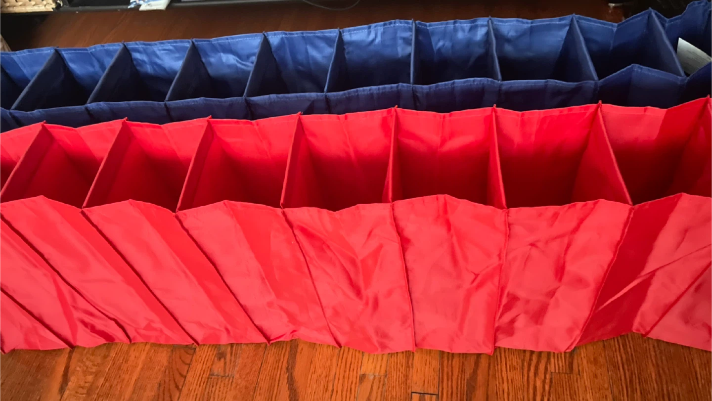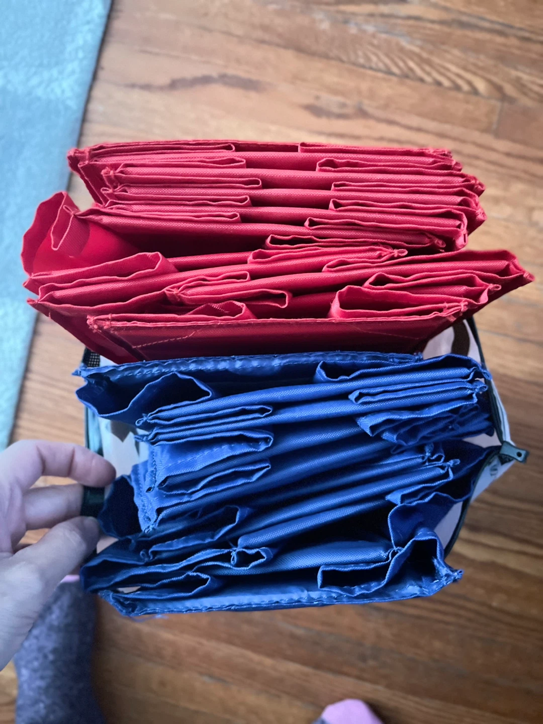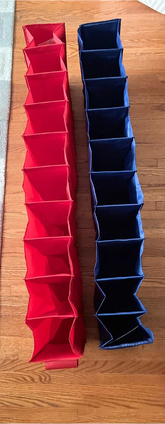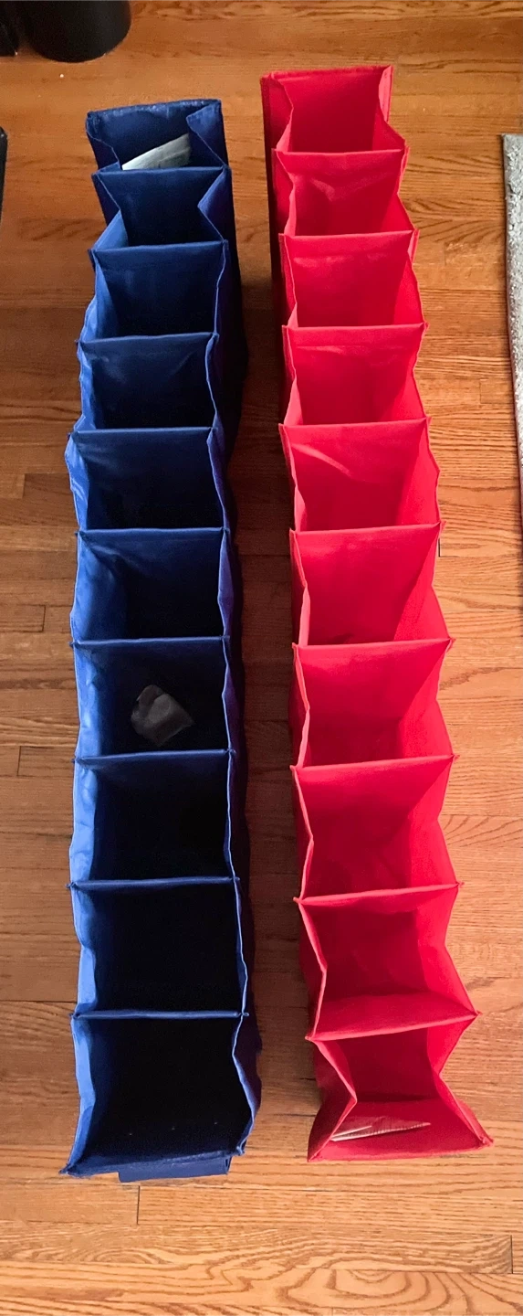 Two IKEA hanging shoe organizers, one in red and one in blue! They're both made of 100% polyester and are in great condition for keeping your closet tidy.