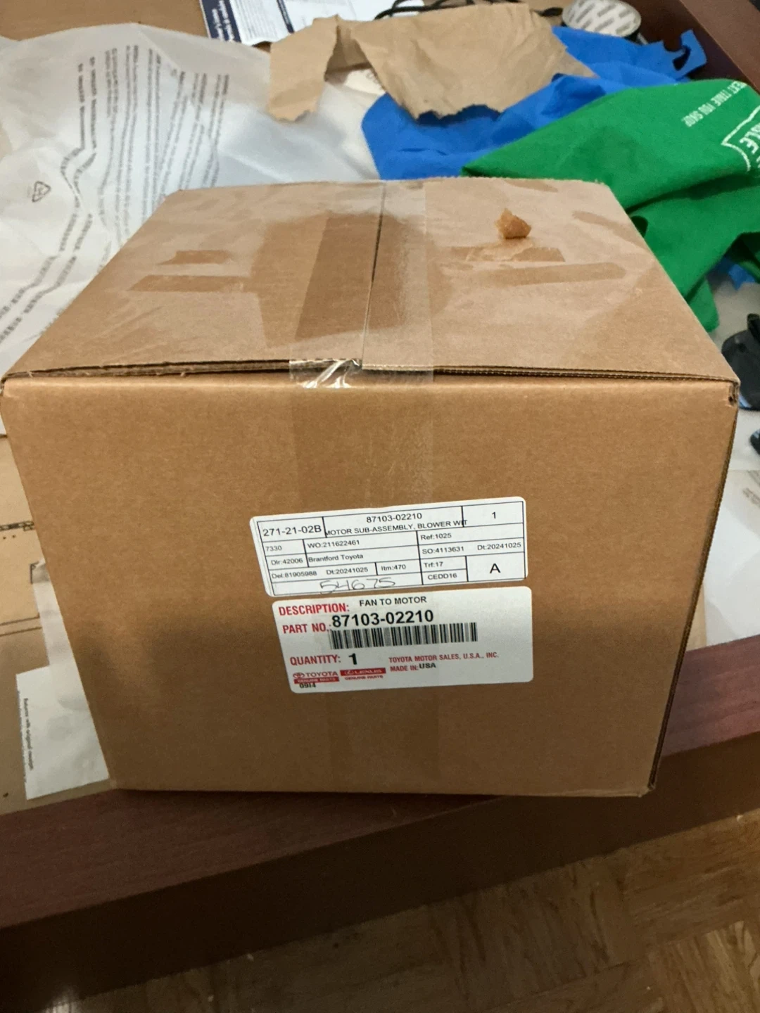 Selling a brand new Toyota/Lexus Fan to Motor, part number 87103-02210. It's still in the original box and packaging. Never been used and ready for installation!