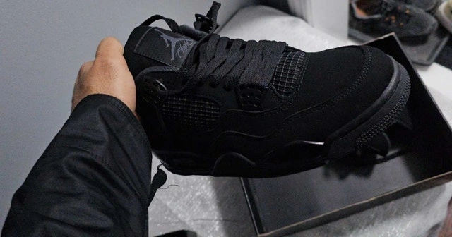 Here are a pair of essentially brand new Air Jordan 4 Retro Black Cat shoes in men's size 10. These stylish sneakers feature a sleek, all-black design with the iconic Jordan silhouette, perfect for both athletic performance and casual wear. The shoes are in good condition, showing some signs of wear, which only adds to their unique character. Check out the detailed photos to see the exact condition.