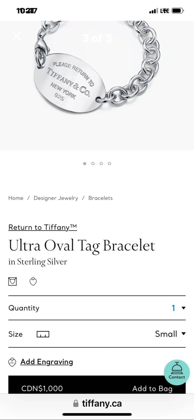 💎Selling a Tiffany & Co. Ultra Oval Tag Bracelet in sterling silver. It's a size small and comes with its original pouch! Retails for $1,000 CDN. It is in great condition!💎