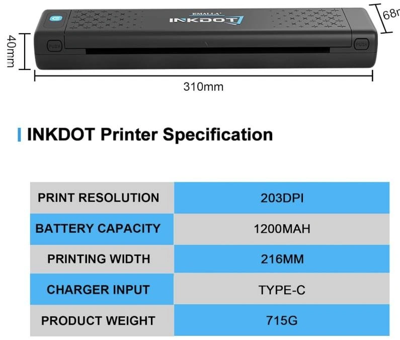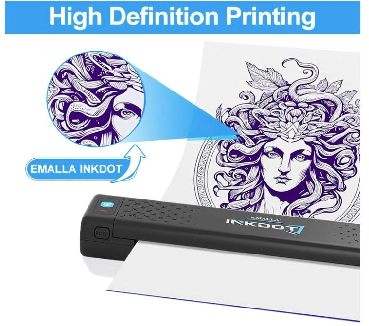 BRAND NEW IN BOX - Emalla INKDOT Tattoo Stencil Printer, Bluetooth Thermal Printer Machine. Experience lifelike stencil transfers with 203DPI high-definition thermal printing. Our tattoo stencil printer captures delicate linework and shading gradients, unlock advanced tattoo artistry possibilities, enhance tattoo design flexibility.