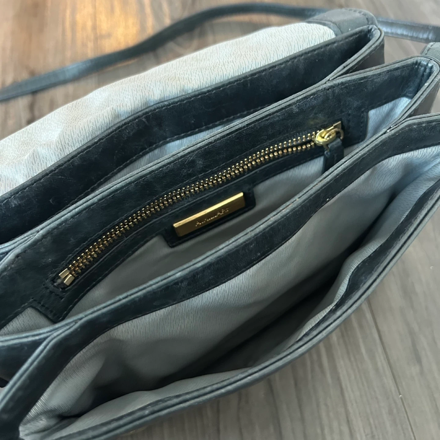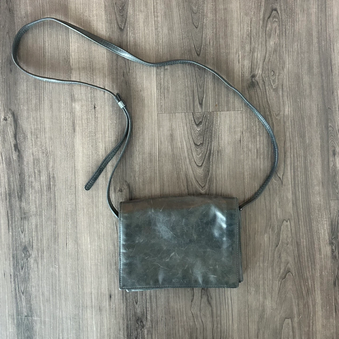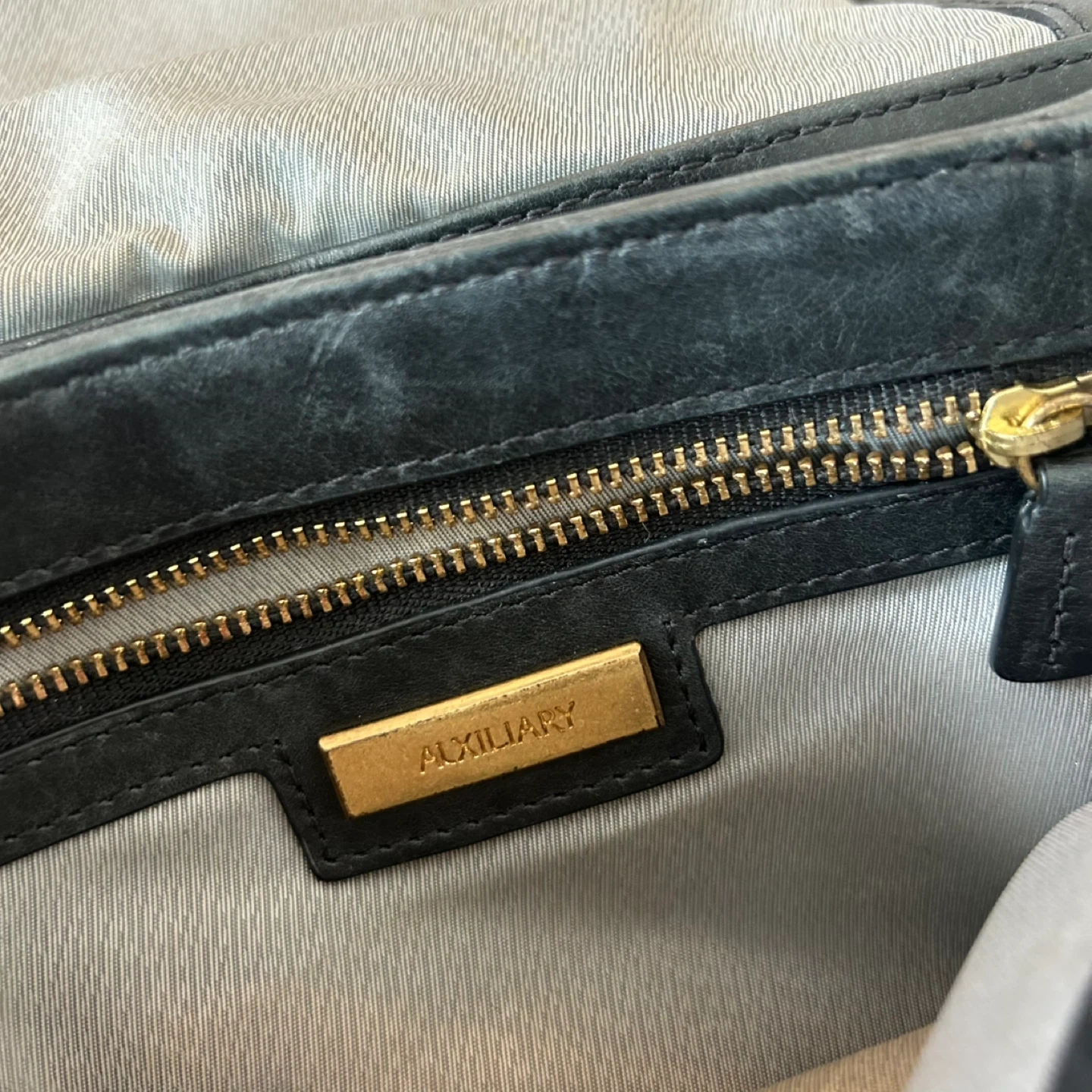 Selling a black leather crossbody bag from Auxiliary. The bag features a sleek design and a convenient size for everyday use.