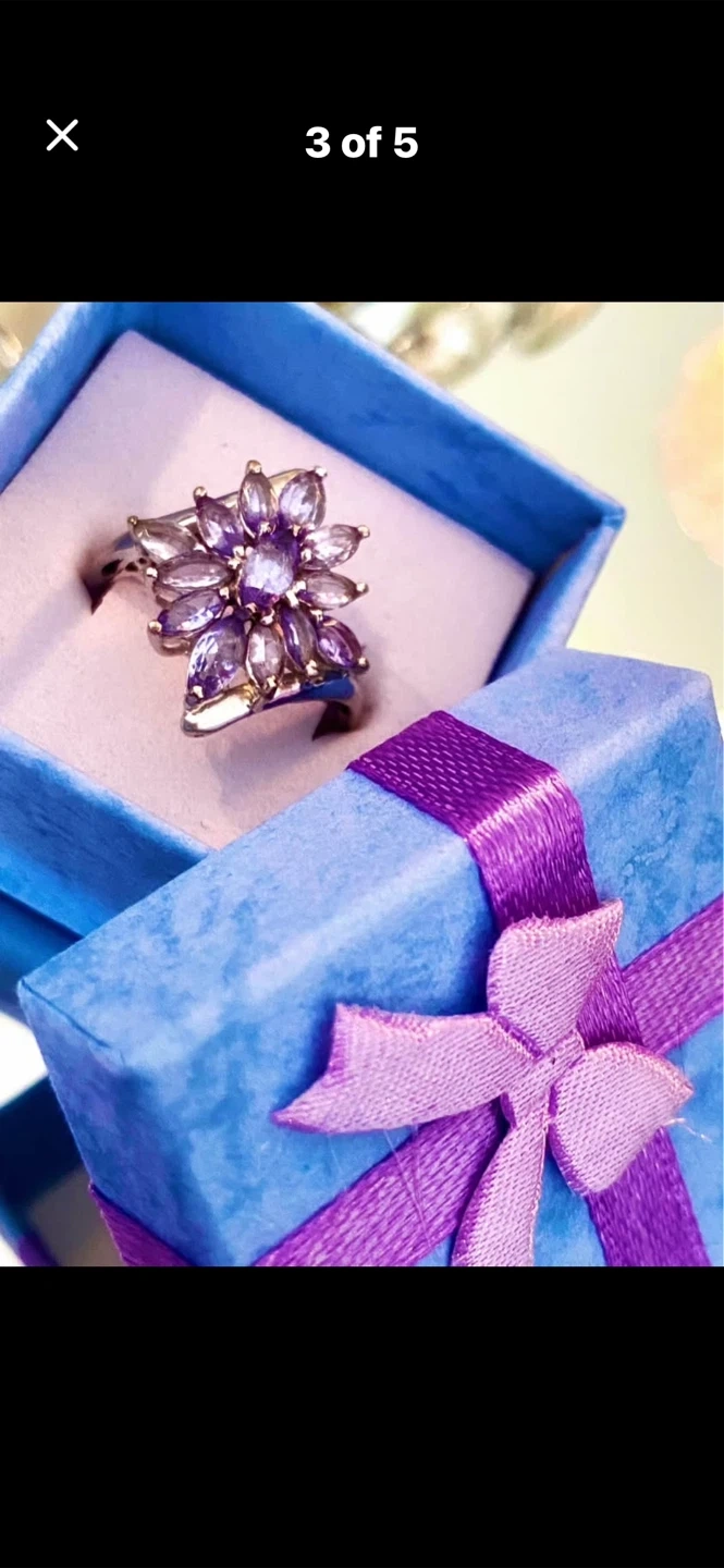 💜Selling a beautiful Stauer tanzanite ring and necklace set! The ring and pendant are both flower-shaped with many tanzanite stones set in silver-tone metal. Perfect for adding a touch of elegance to any outfit