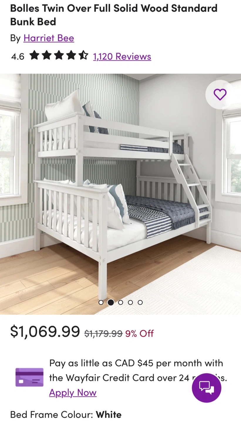 Harriet Bee Bolles twin over full bunk bed in white! It's a solid wood standard bunk bed.