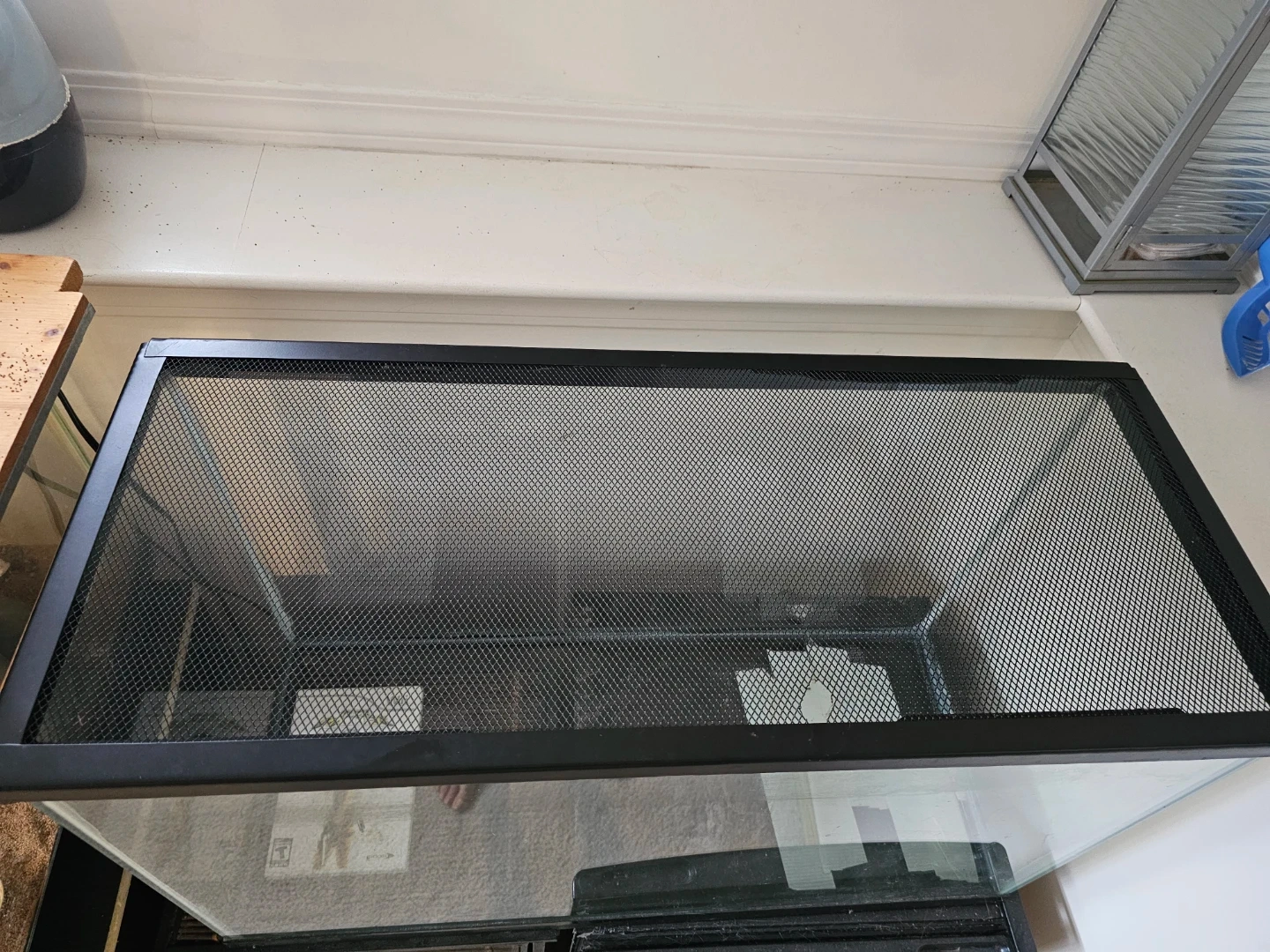 GIVING AWAY A FREE, used terrarium with strong lid. It's approximately 30 inches long, 18 inches high, and 13 inches wide.