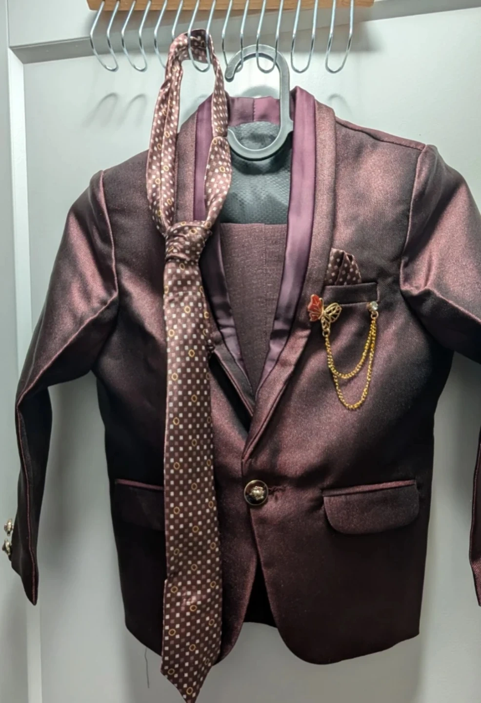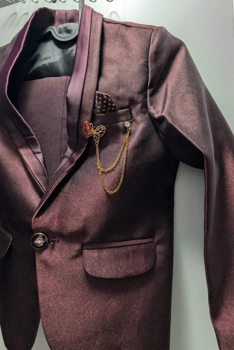 Boys Burgundy Suit Jacket set with Pant & Tie