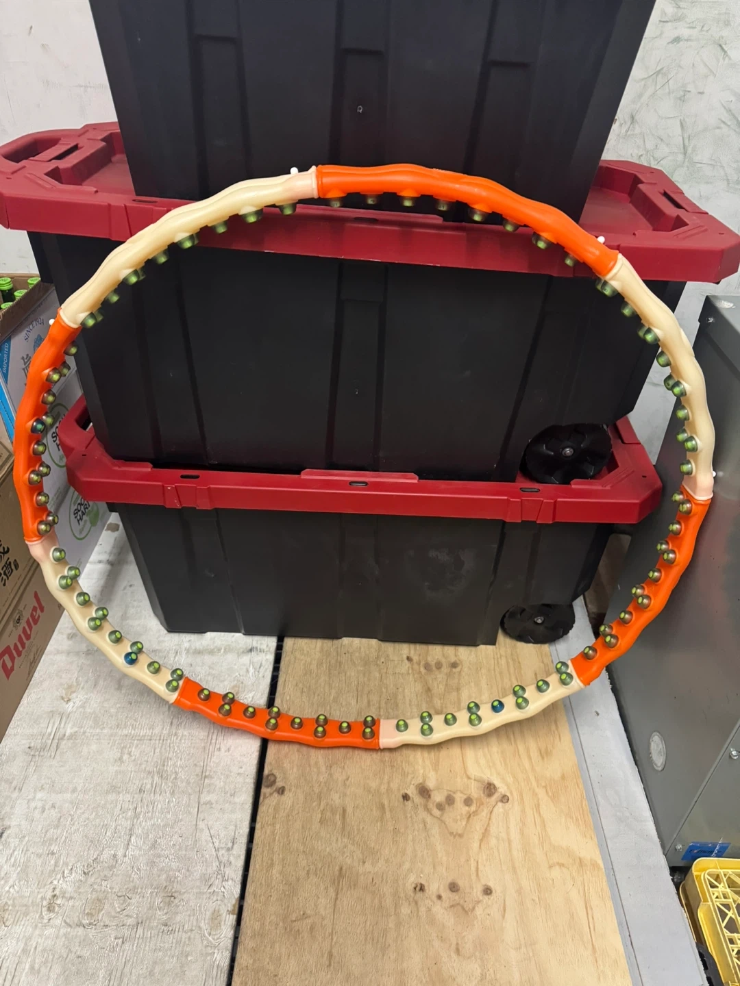 Selling a weighted hula hoop! It's in great condition and ready for a new owner who wants to have fun while exercising. The hula hoop features massage points for an extra touch of comfort during your workout