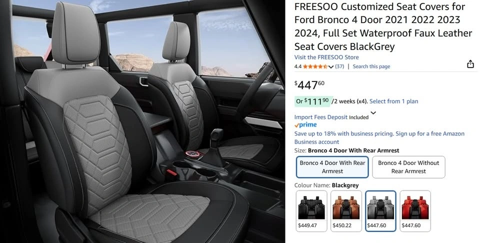 Ford Bronco 4 Door (2021-2024) – Custom Faux Leather Seat Covers