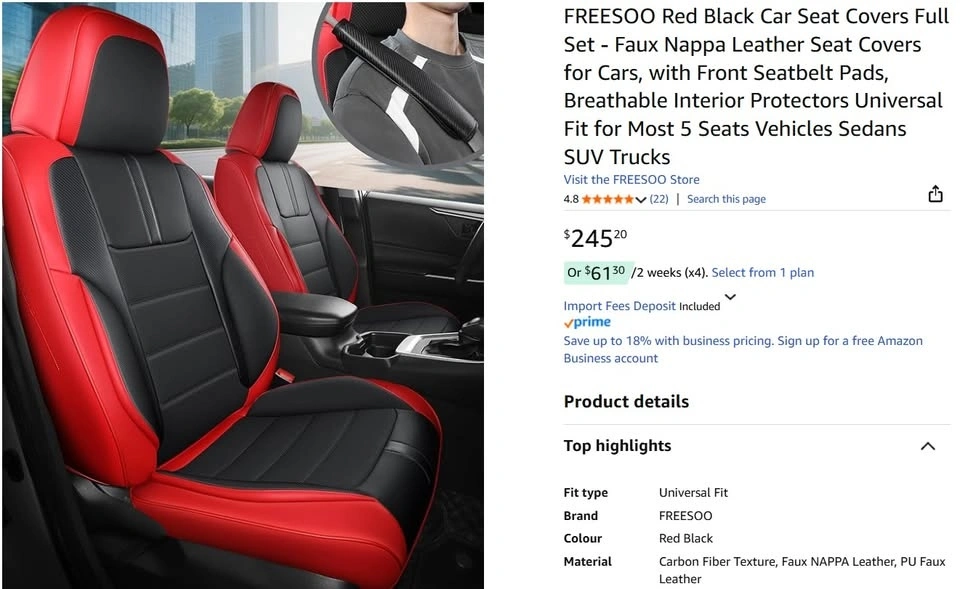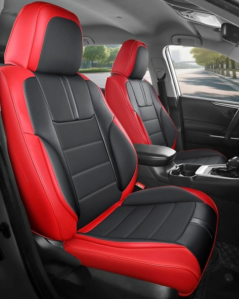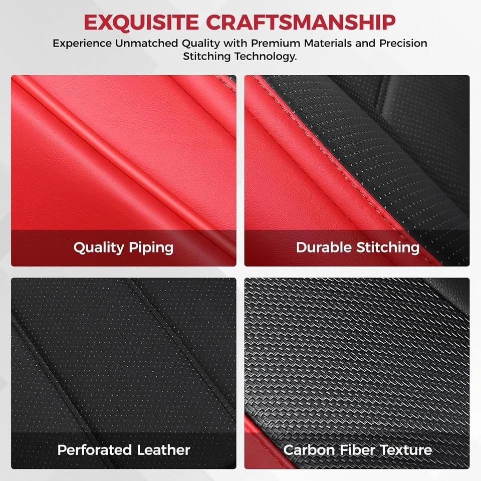 Universal Full Set Car Seat Covers – Red & Black w Carbon Fiber