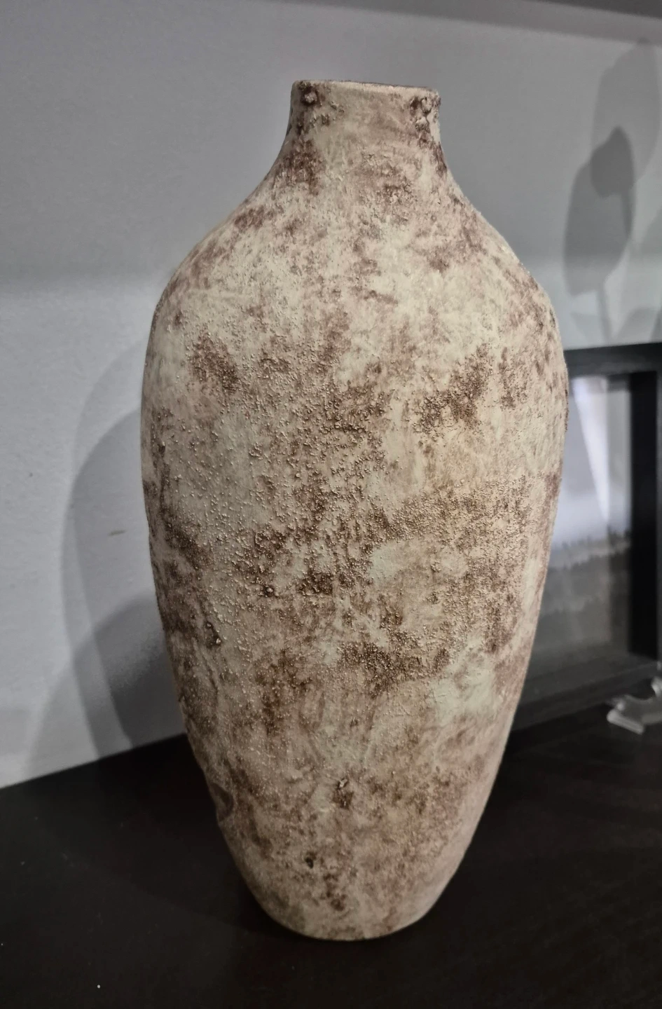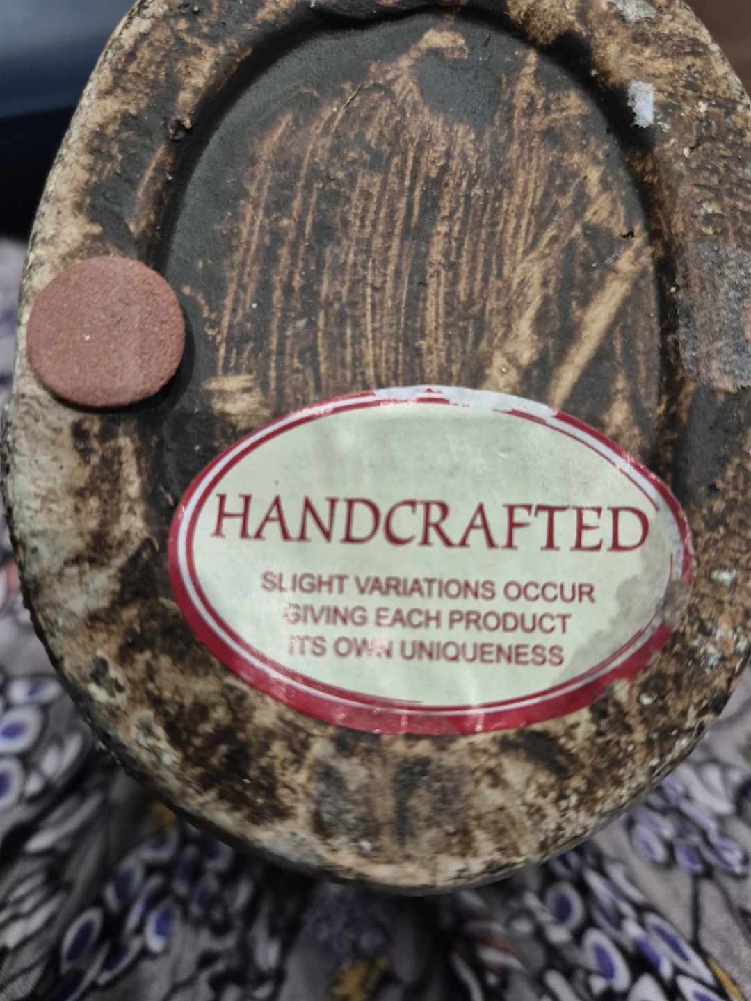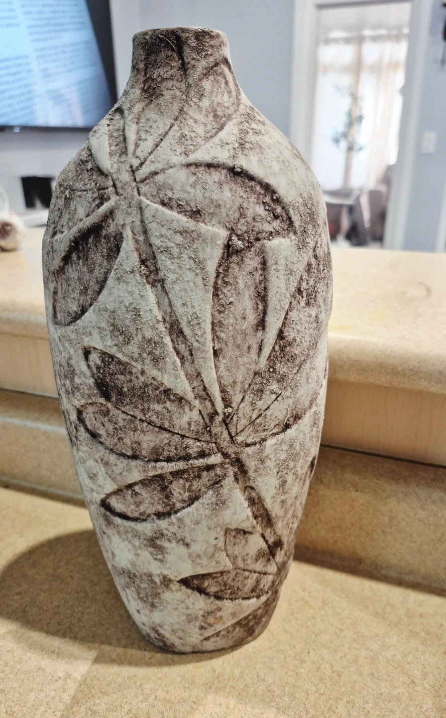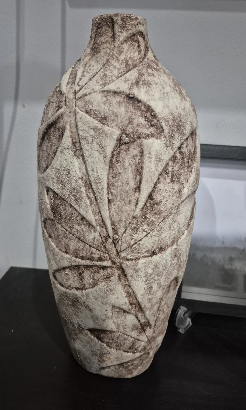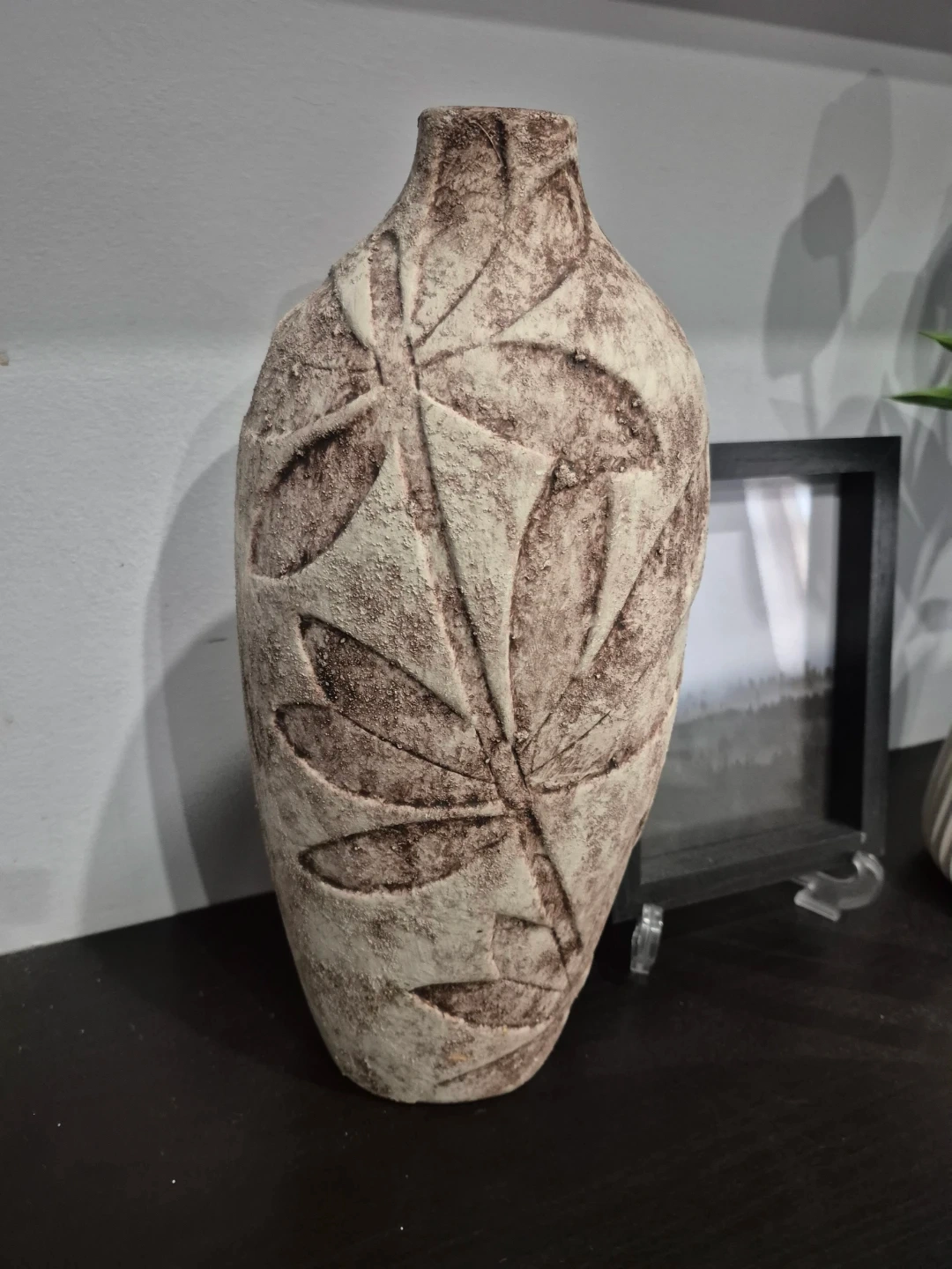 This is a handcrafted decorative vase with a unique leaf design. It's in great condition and ready to add a touch of charm to your home!