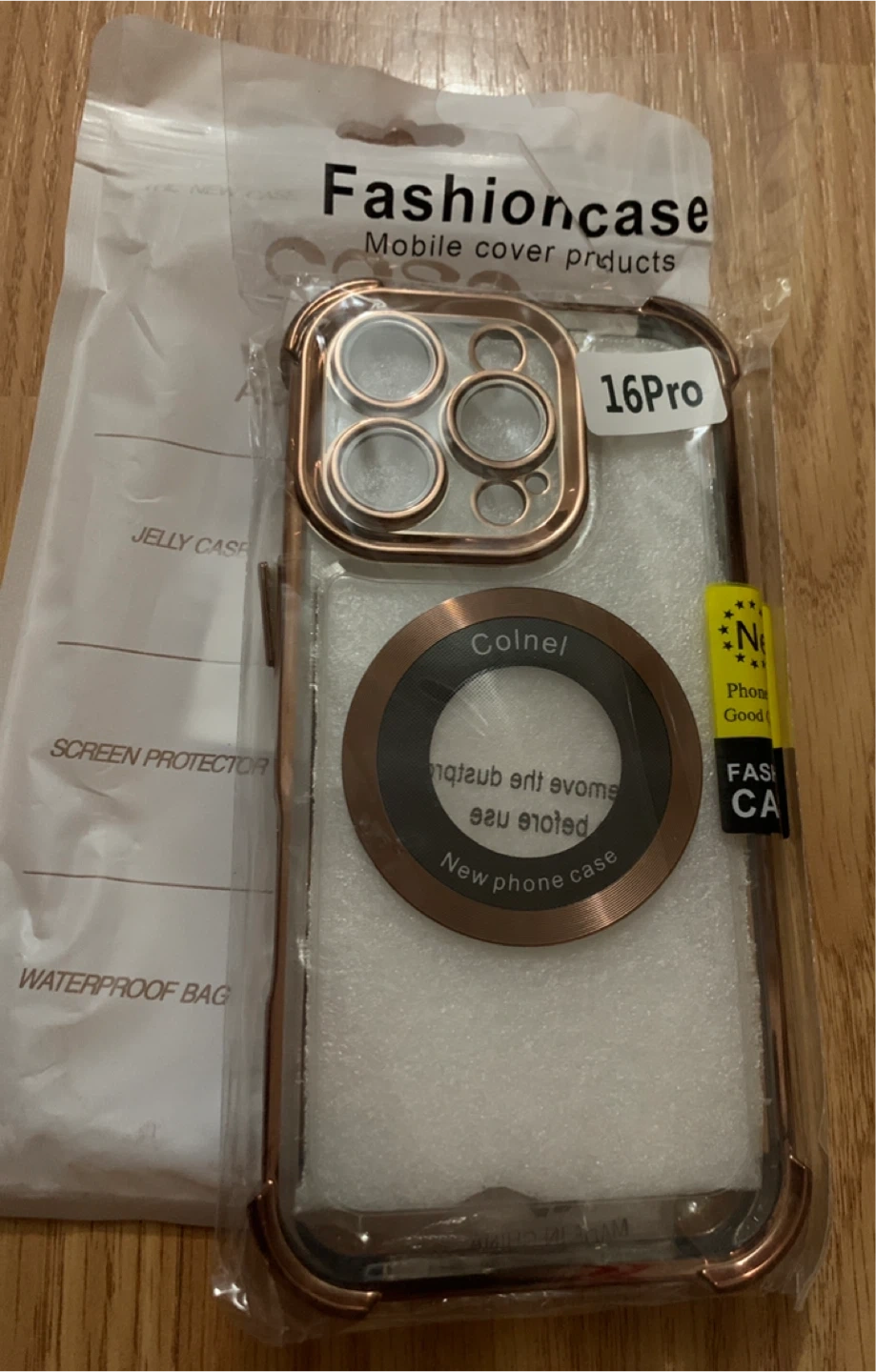 Selling a brand new Fashion Case for the iPhone 16 Pro! It's a stylish mobile cover in a beautiful gold colour. Comes with a jelly case, screen protector, and waterproof bag for added protection. It's designed to be ultra-slim and lightweight, providing a comfortable grip while protecting your phone from scratches and dust