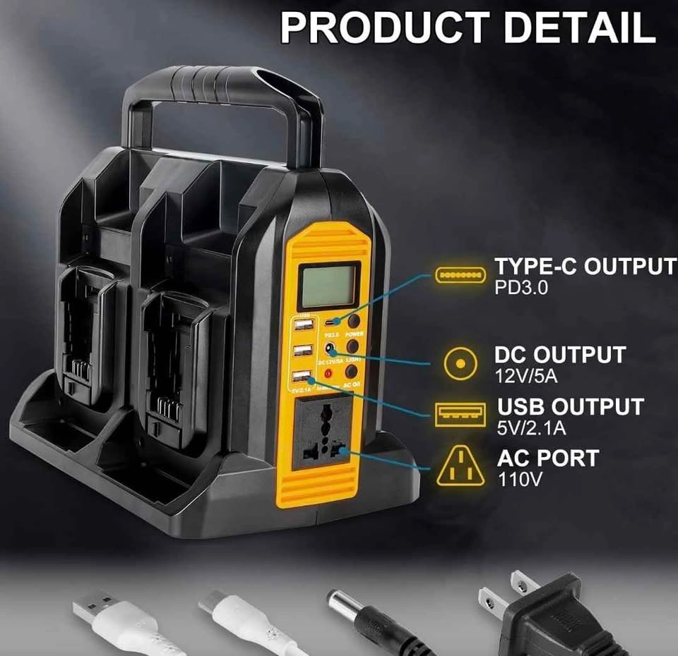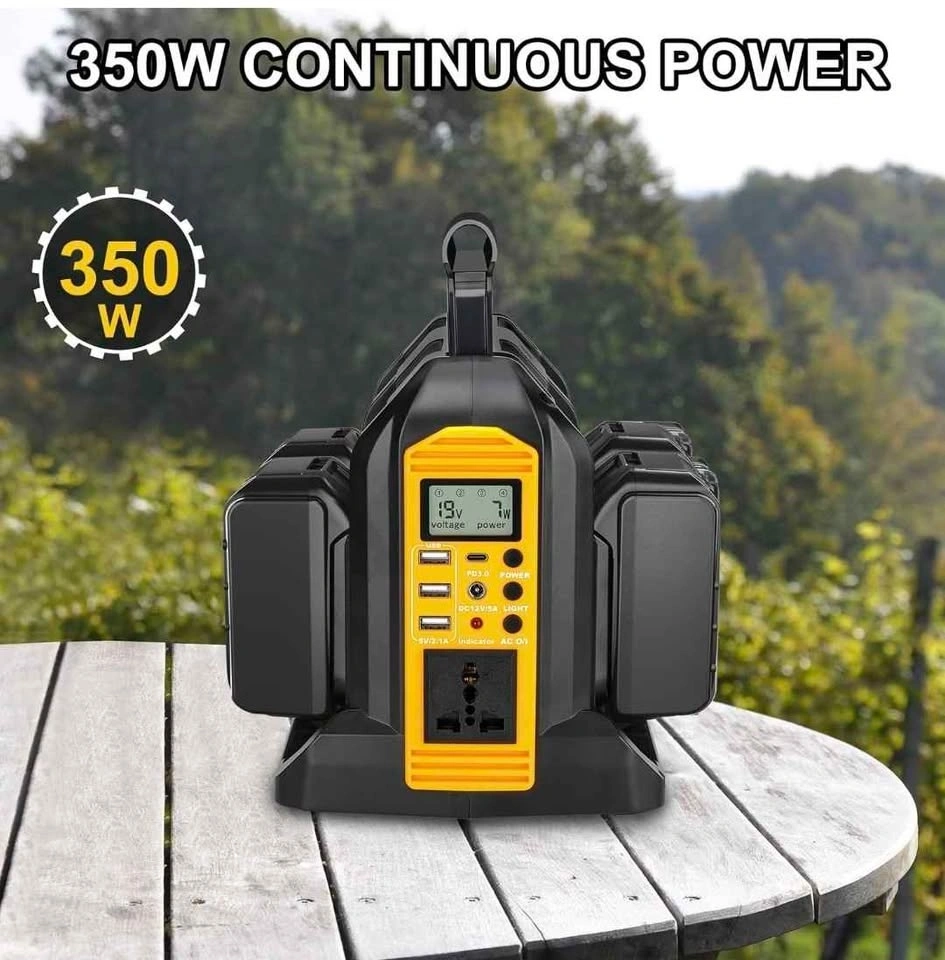 350 W power inverter for Dewalt 20 V 60 V lithium-ion battery, 4 ports of 20 V to 120 V with LED light, 3 USB-A ports, 1 USB-C port, 1 DC port, power station for outdoor camping (tool only).