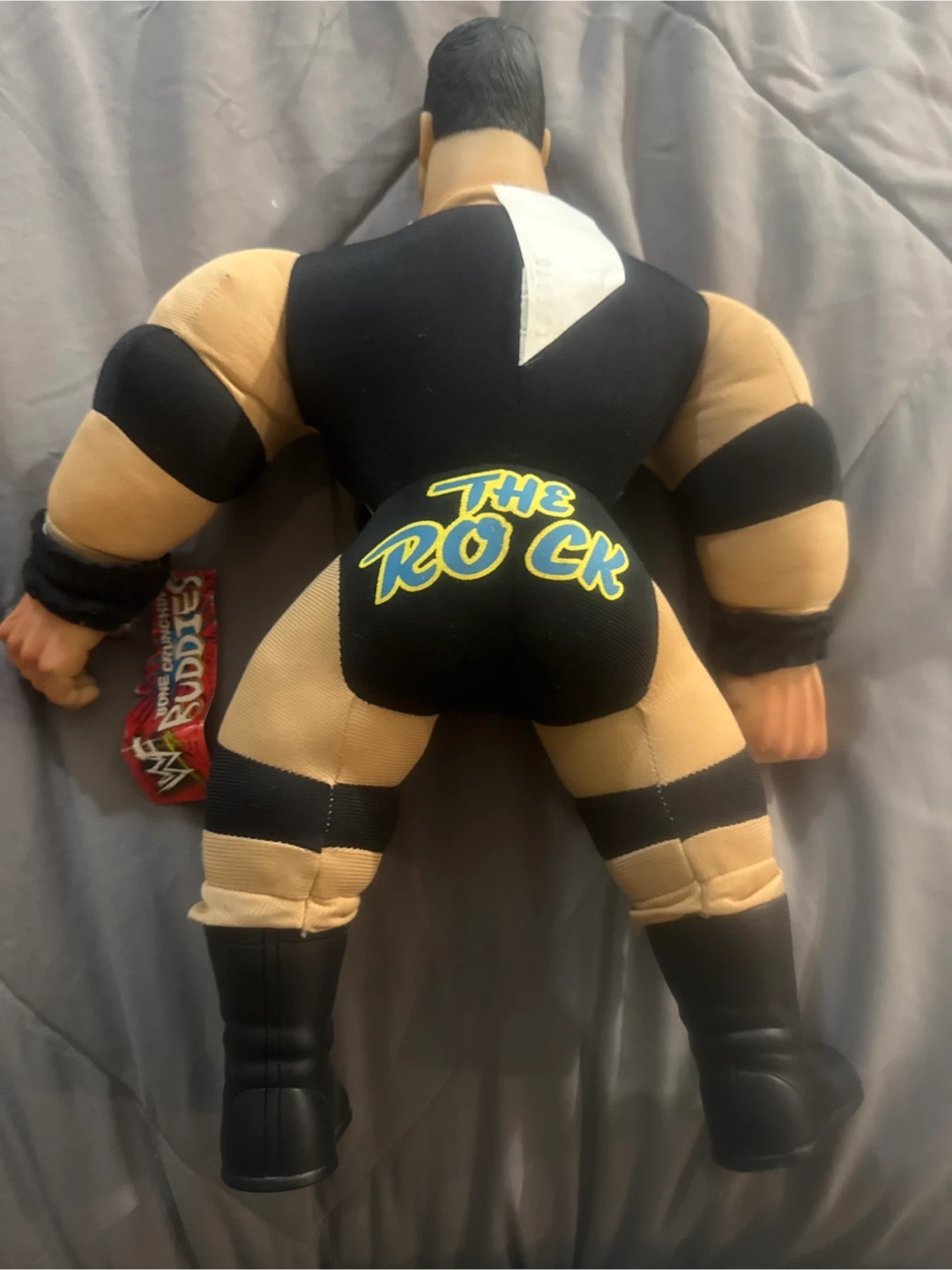 Selling a WWE The Rock Bone Crunchin' Buddies plush toy! It's in good condition and ready for a new home with a wrestling fan