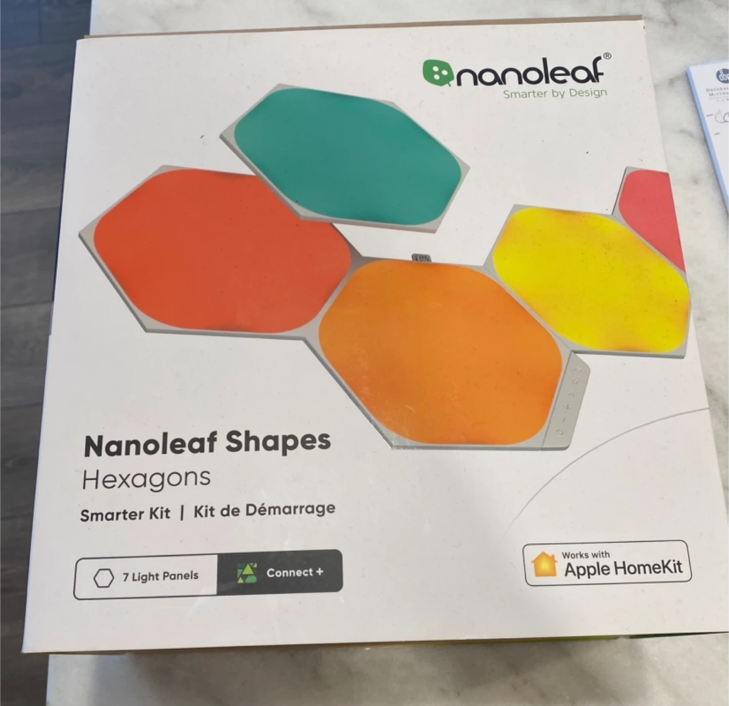 Selling a Nanoleaf Shapes Hexagons Smarter Kit! It comes with 7 light panels and is compatible with Apple HomeKit. The box is included as well
