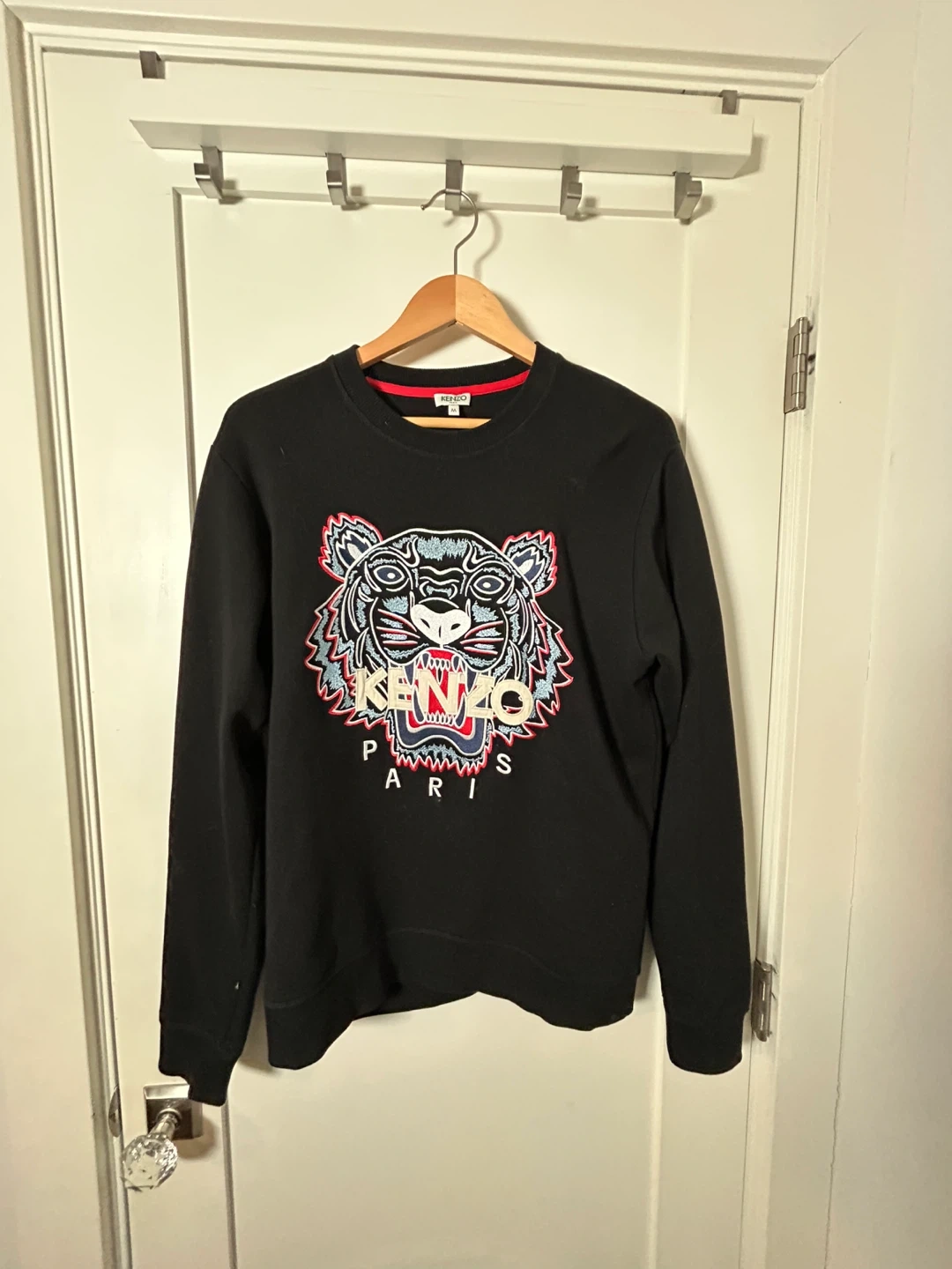 Selling a Kenzo Paris black crewneck sweater with the iconic tiger design! It's a size medium and in great condition. Perfect for adding a bit of style to your wardrobe!