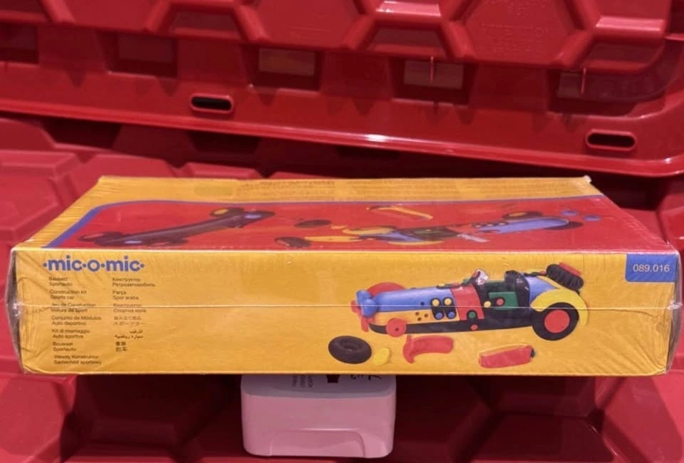 I'm offering a brand new Mic-o-Mic Roadster 089.016, a classic German construction toy that encourages creativity and fine motor skills through building a colourful vintage race car. This set is perfect for collectors or as a unique gift for children and adults alike! Because it’s still sealed, this toy would make a cool gift! Each piece clicks together for a firm hold, ensuring the model stays intact during play and display.